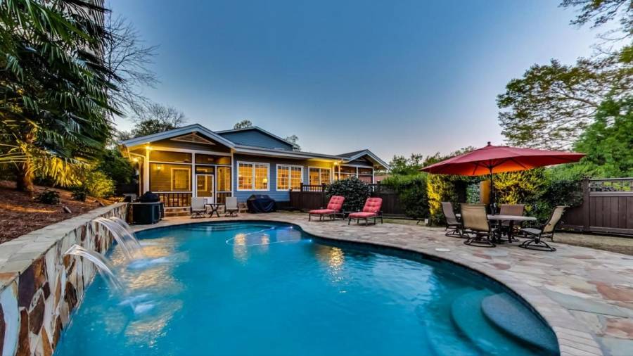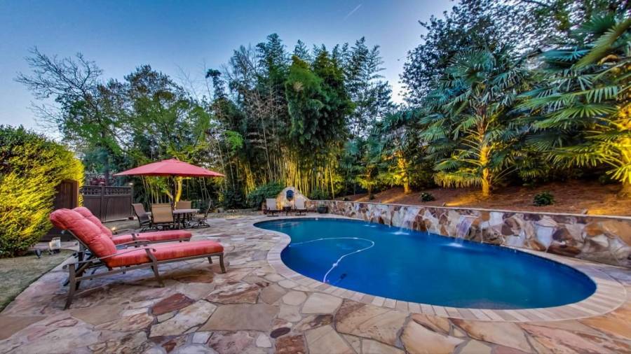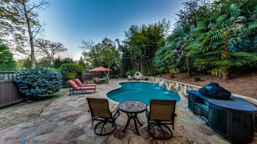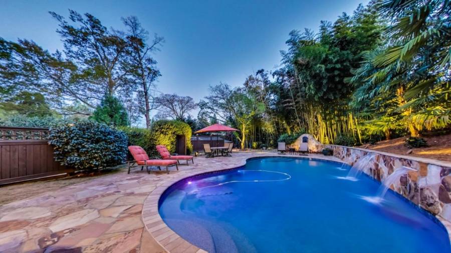 A must see gated oasis at the Duckpond. Exsquisitly maintained home with the oversized master on the main. Fenced and Gated backyard includes a 2 car garage and swimming pool. The pool is shaded by palms and a privacy wall. A triple waterfall fountain into the pool completes the package. Stroll or picnic at the duckpond and adjacent park. Use the super popular Garden Hills pool. Walk to church or to dinner. The basement is finished with polished concrete floor perfect for exercise equipment, ping pong table, and bar. The exterior entrance leads out to the driveway.