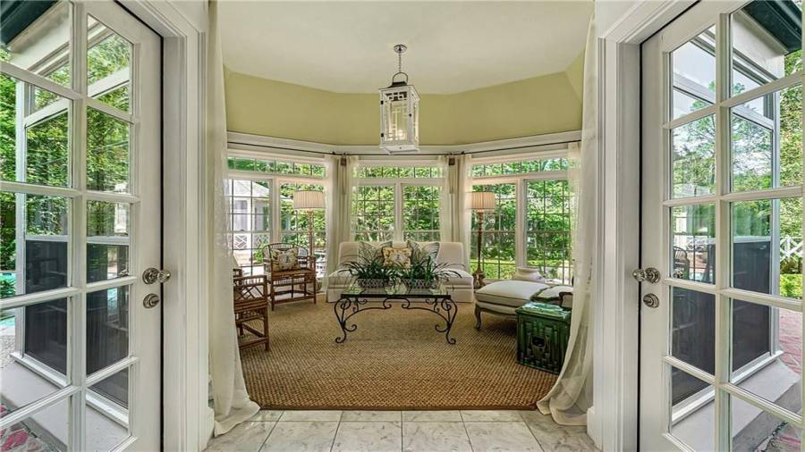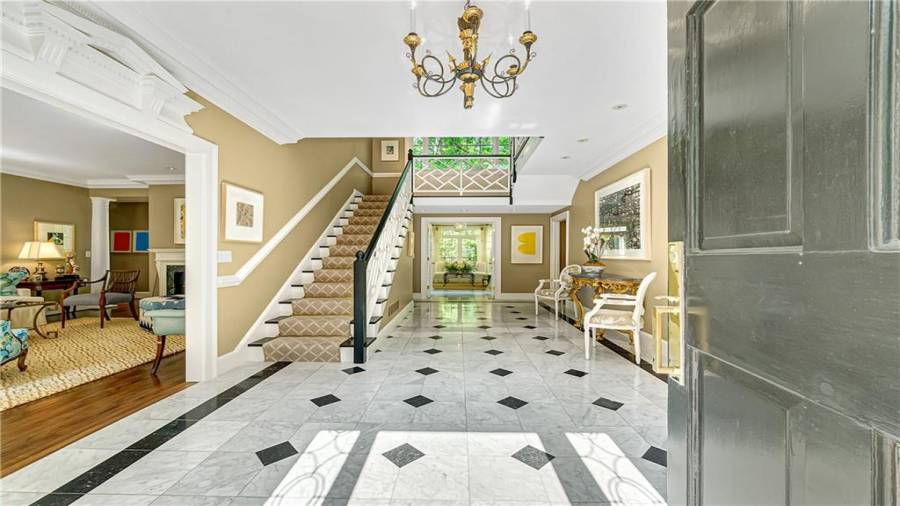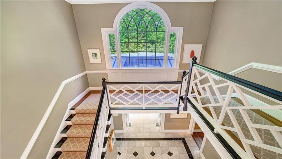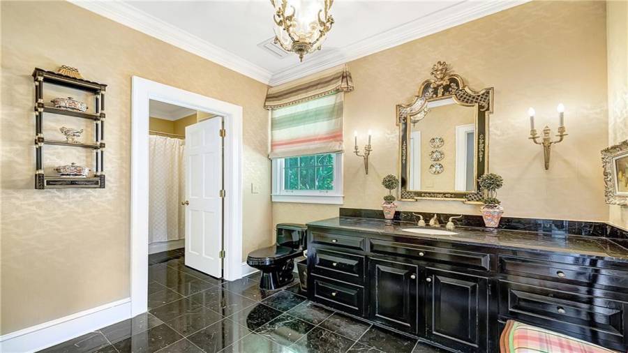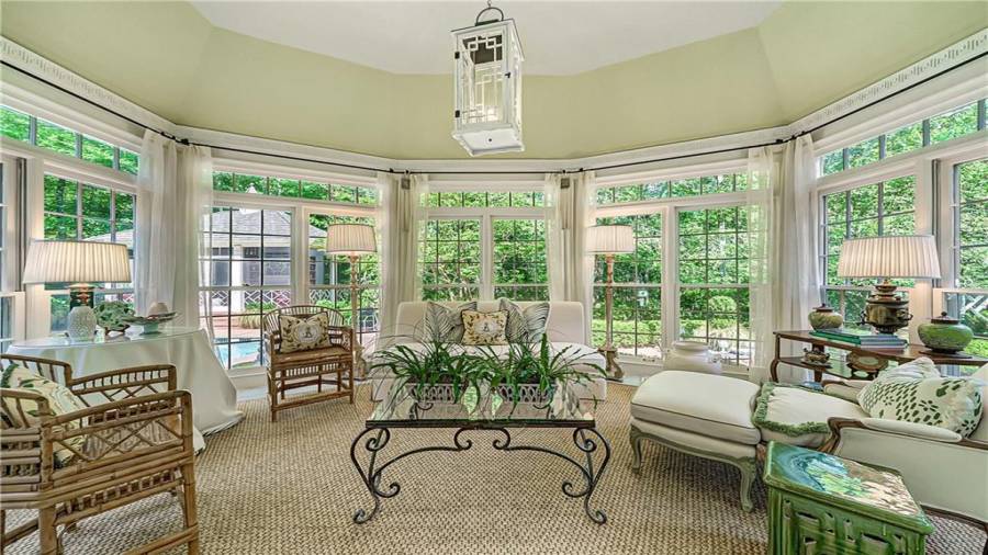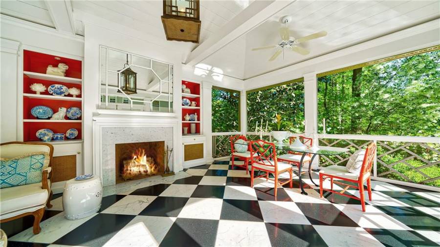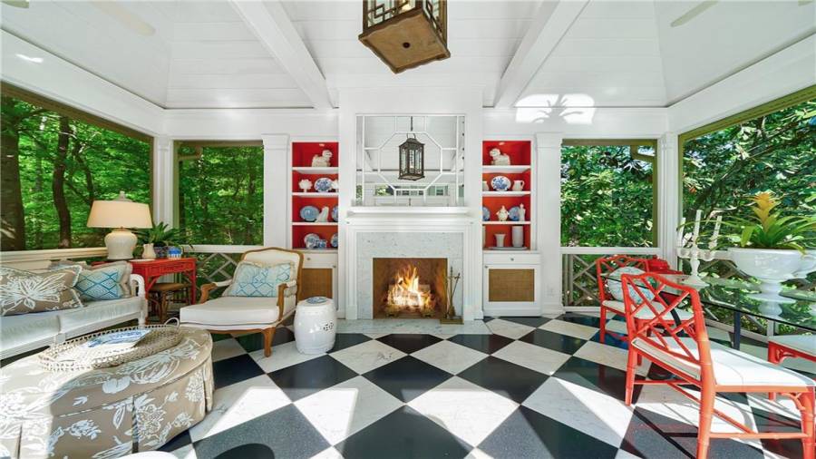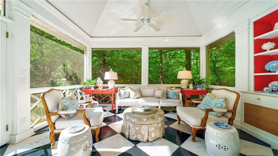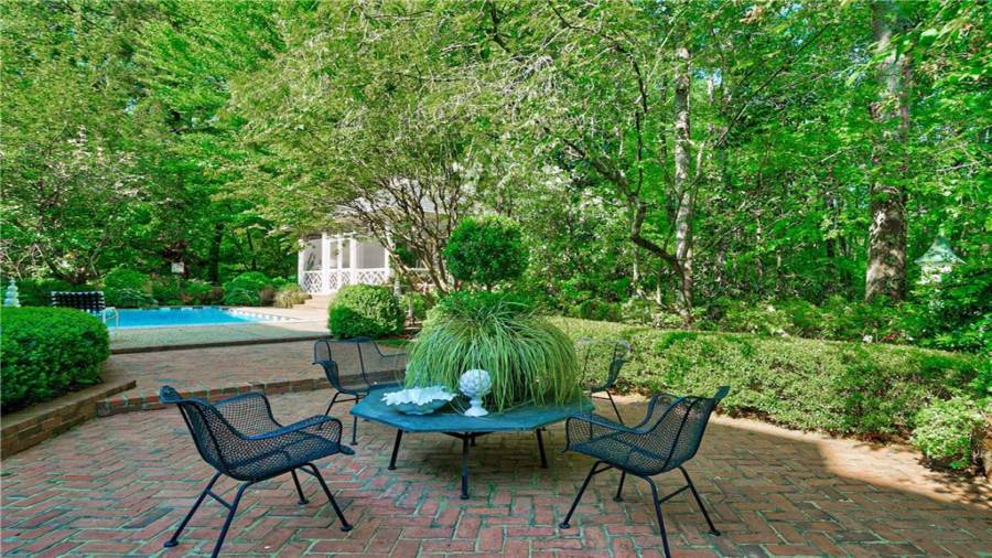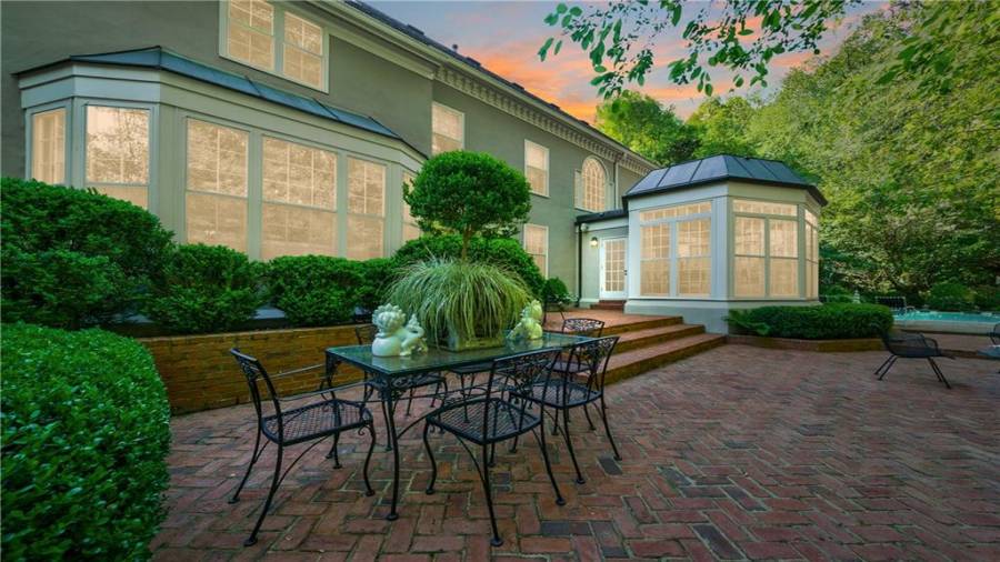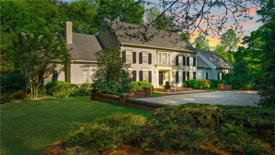 Gorgeous Buckhead estate designed by Norman Askins atop a 2.2 acre private lot backing to Chattahoochee National Forest, and seconds to Whitewater Creek Park trails. Exquisite grounds feature a tennis court, winding trails, pristine landscape and heated gunite pool. The custom pool house is screened, includes a fireplace, bookcases, refrigeration and offers living and dining spaces with gorgeous views. Welcoming marble foyer with a grand staircase is open to the formal fireside living room & banquet sized dining room. Renovated kitchen with state-of-the art