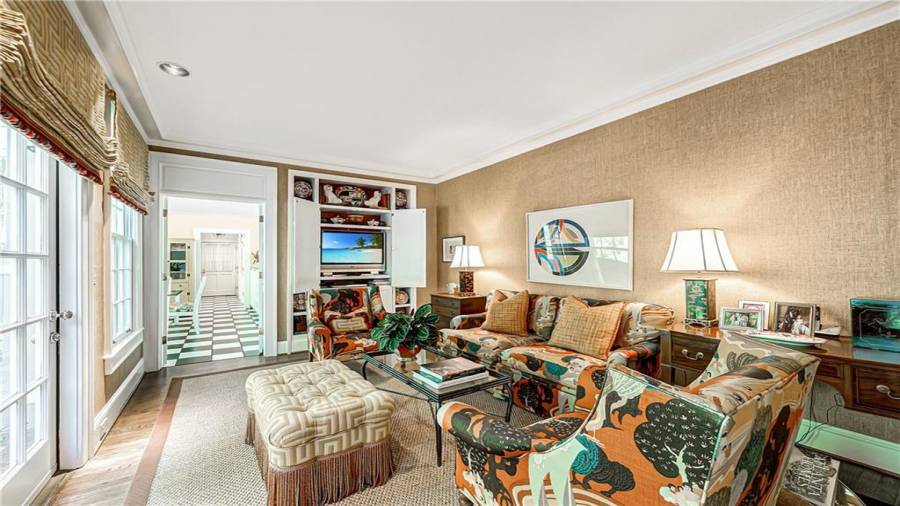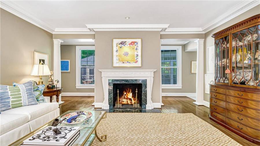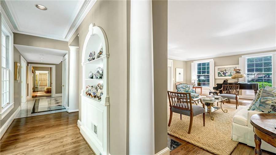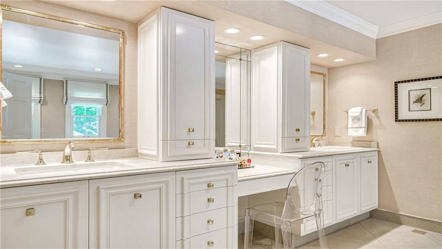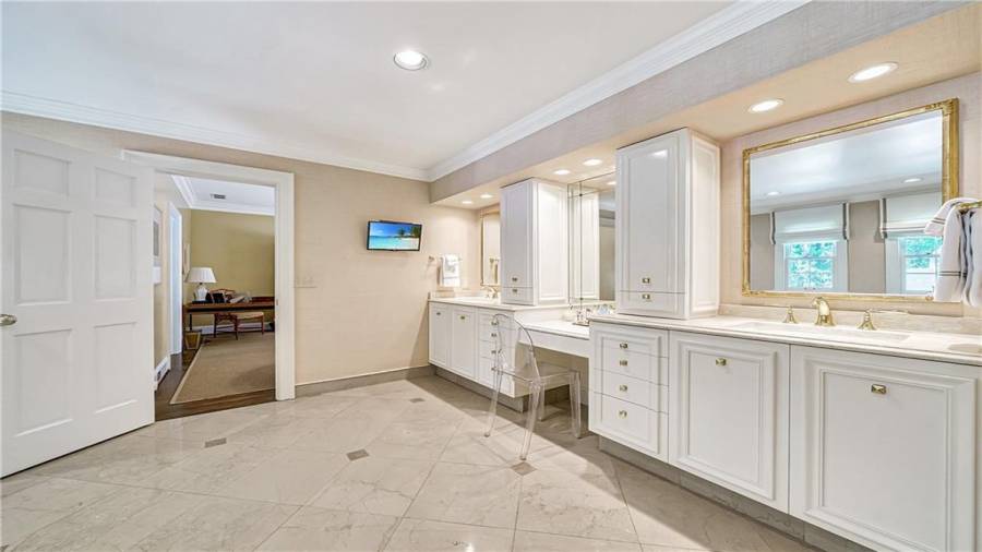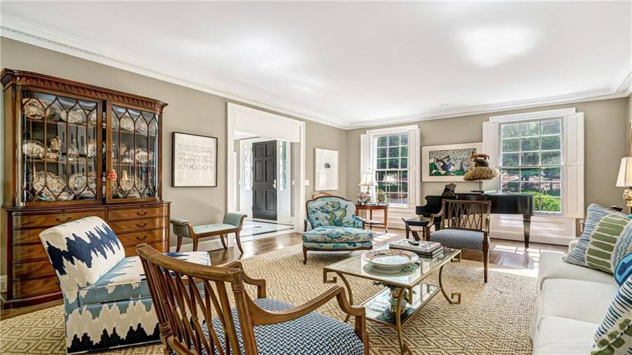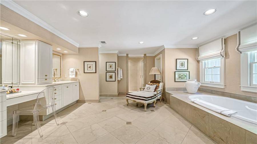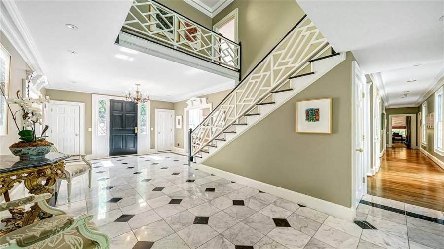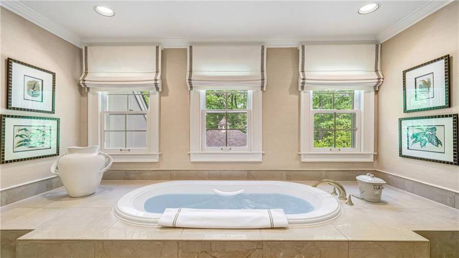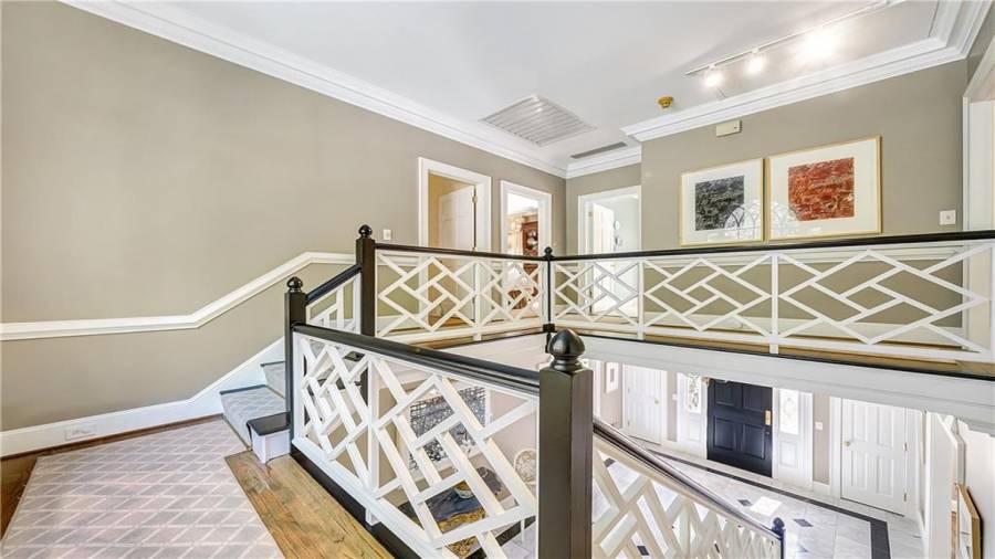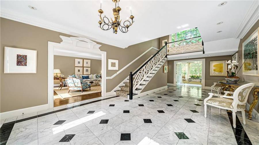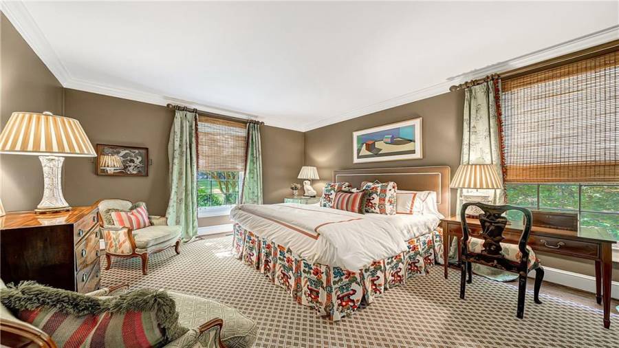 Gorgeous Buckhead estate designed by Norman Askins atop a 2.2 acre private lot backing to Chattahoochee National Forest, and seconds to Whitewater Creek Park trails. Exquisite grounds feature a tennis court, winding trails, pristine landscape and heated gunite pool. The custom pool house is screened, includes a fireplace, bookcases, refrigeration and offers living and dining spaces with gorgeous views. Welcoming marble foyer with a grand staircase is open to the formal fireside living room & banquet sized dining room. Renovated kitchen with state-of-the art