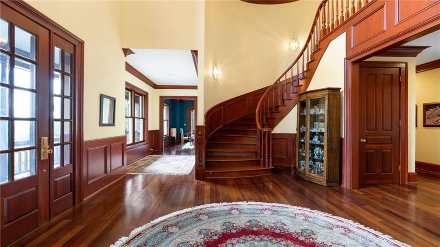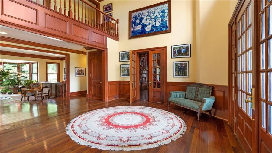 Come take a look inside this first time offered estate featuring 12,000+ sf home, two story pool house with 20×50 ion gunite pool, 4 car detached garage on 148+ acres. Main home has six ensuite bedrooms, nine full bathrooms, four half bathrooms, two story library, media room, formal living room with wet bar and solarium, in-law suite, conference room & so much more! Established courtyard landscaping surround large 9 ft deep pebbletec/gunite pool with diving board, built in waterfall & jacuzzi hot tub. This property is ideal for a bed & breakfast or other event facility!
