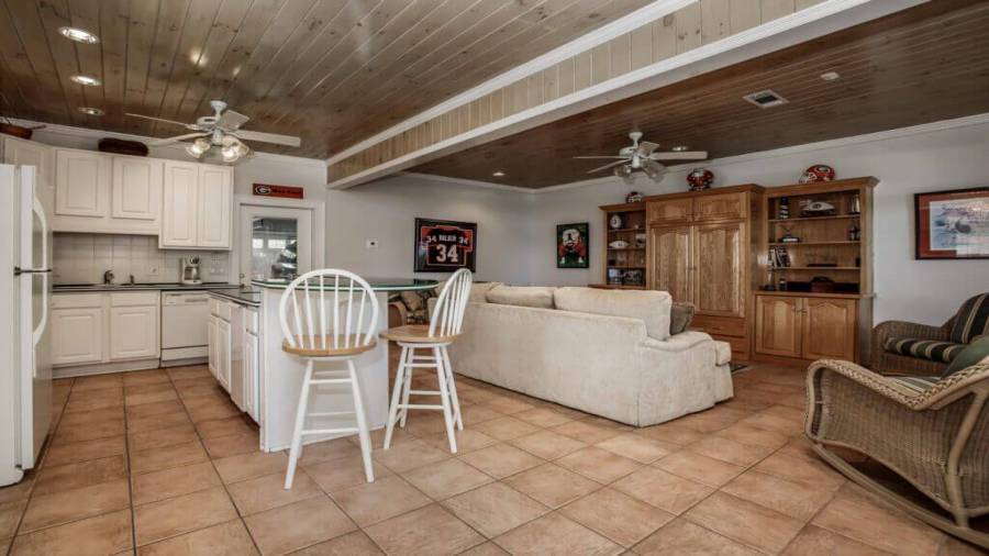 : Breakfast Bar, Cabinets White, Kitchen Island, Pantry, Second Kitchen, Stone Counters