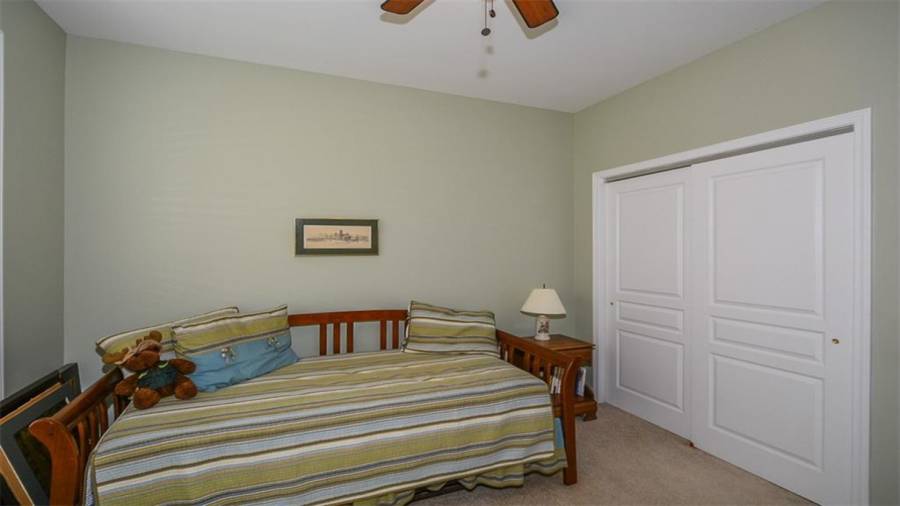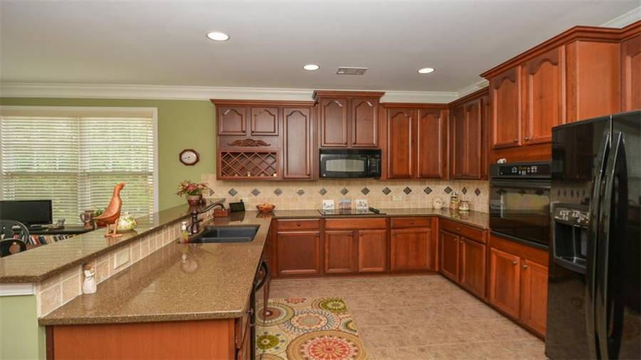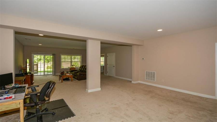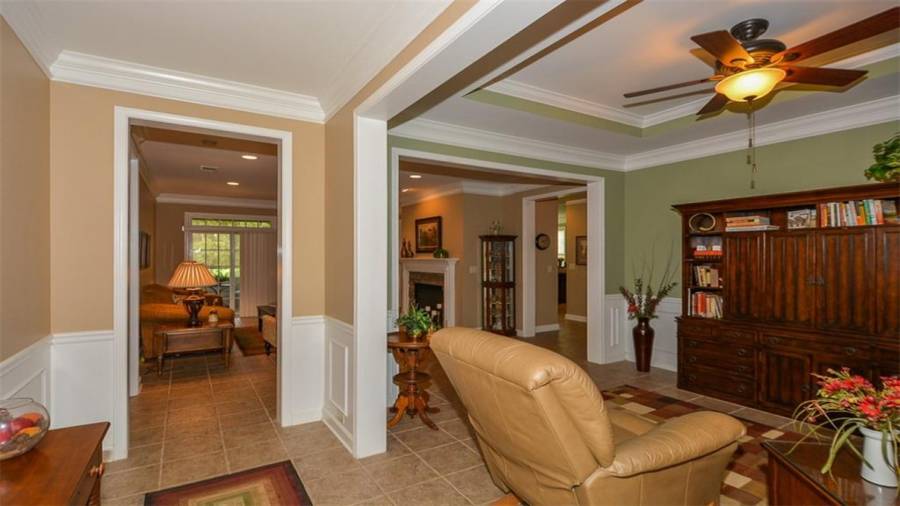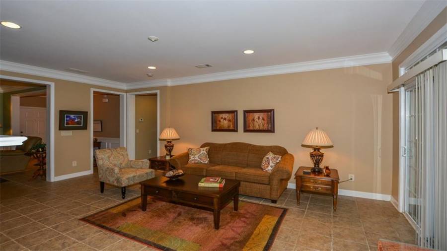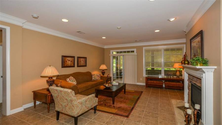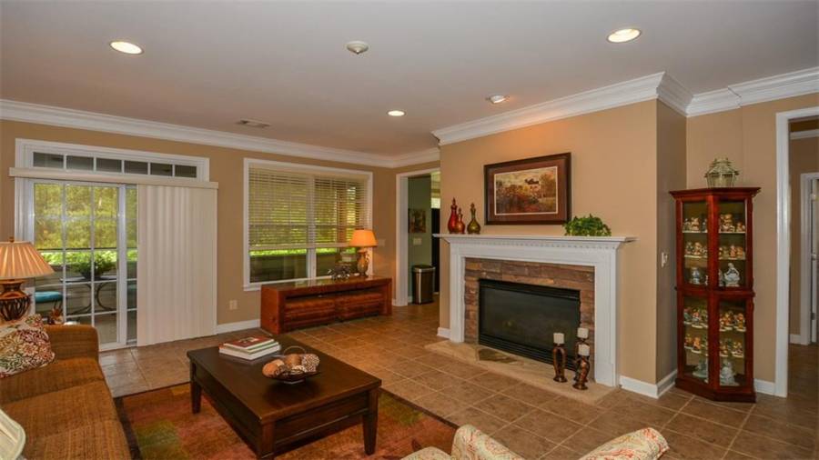 This Soleil home features 3 bedrooms, 3 baths, an office and finished terrace level. It sits on a beautiful lot that backs to wooded privacy with seasonal views of the golf course. There is new carpet and paint in the terrace level. Enjoy nature at its best on your screened porch that looks out on established vegetation. The big eat-in kitchen is just one of many things to love about this home. Why wait to start enjoying this award winning lifestyle!
