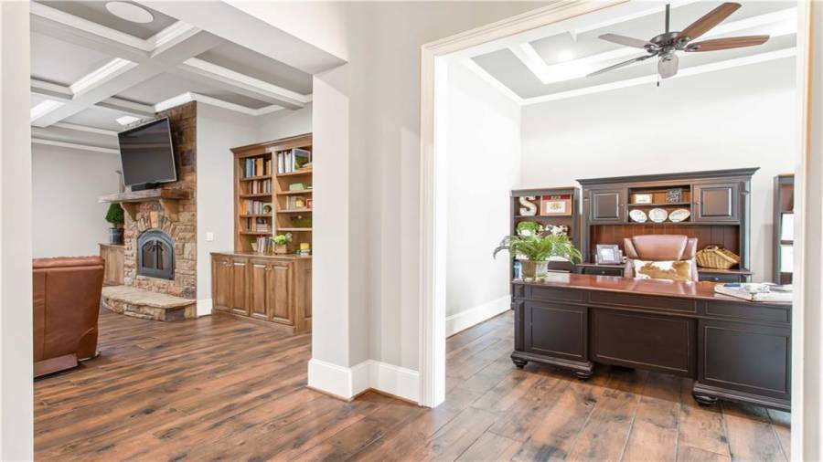 : Disappearing Attic Stairs, Double Vanity, Entrance Foyer, High Ceilings 10 Ft Lower, Tray Ceiling(s), Walk-in Closet(s), His And Hers Closets, Low-flow Fixtures, Bookcases, High Ceilings 9 Ft Upper, High Ceilings 10 Ft Main, Coffered Ceiling(s)