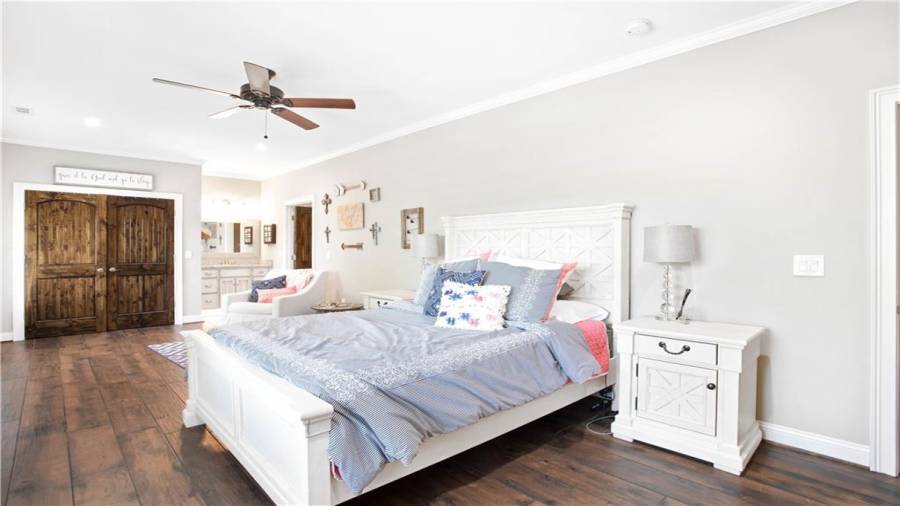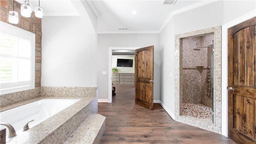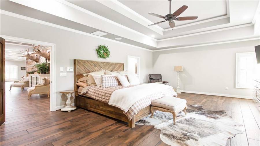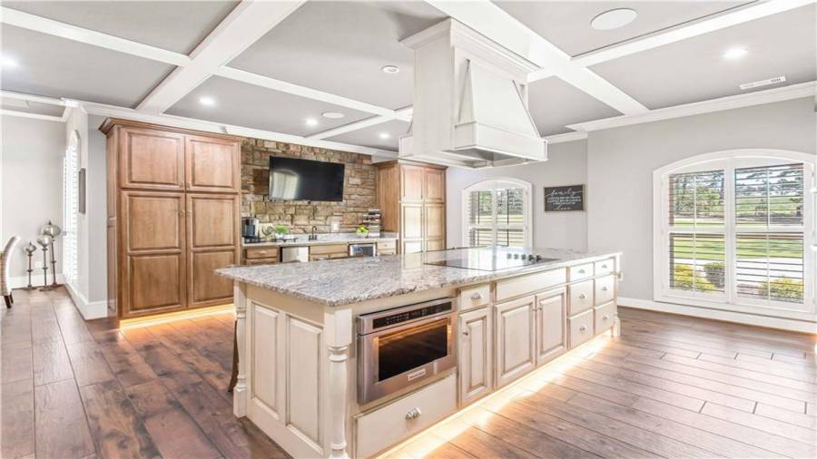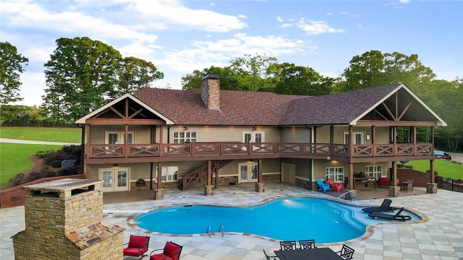 This Impressive Estate truly is one of a kind! Think “Garden and Gun” Relaxed, Luxurious Estate was custom built w/owner’s attention to detail that are evident in every room. This beauty is situated on 64+ acres overlooking resort style pool complex w/stacked rock fireplace, 7 acre stocked lake, gated entryway, 9 acre pasture/garden, established trail system, old growth hardwoods. Prepare to be wowed as you approach rock entryway and enter open concept floorplan w/hardwood tile floors throughout, plantations shutters, motion activated lighting, stacked rock fireplace.