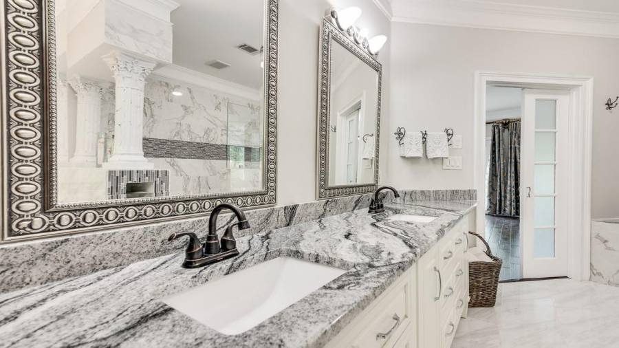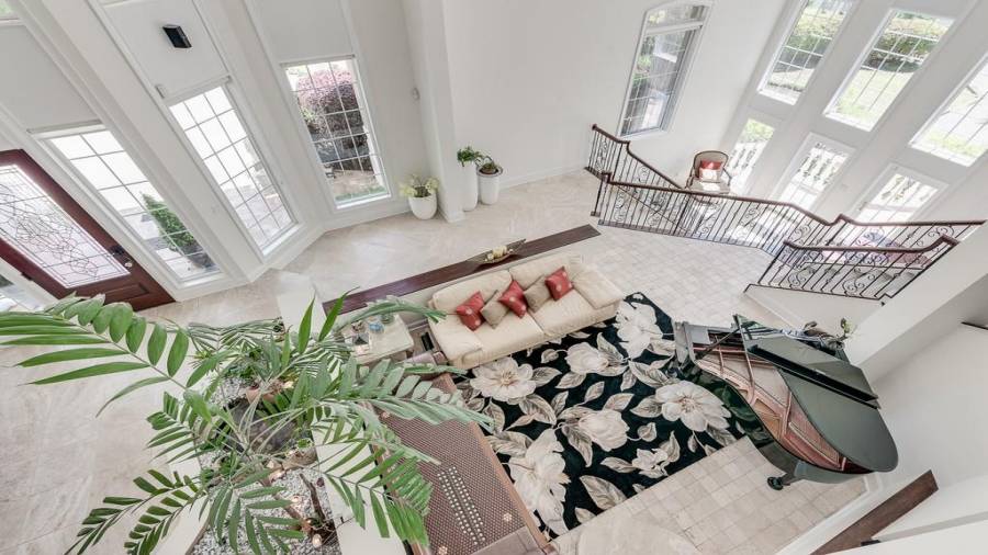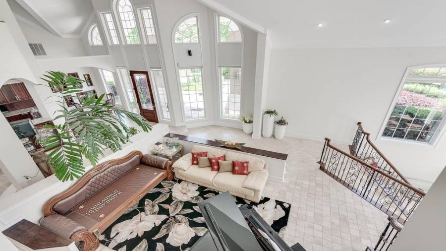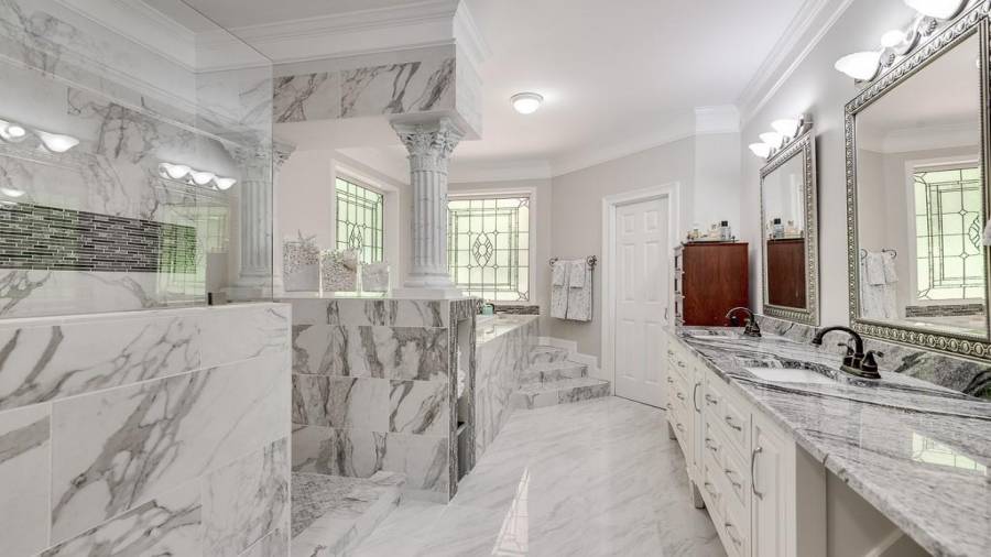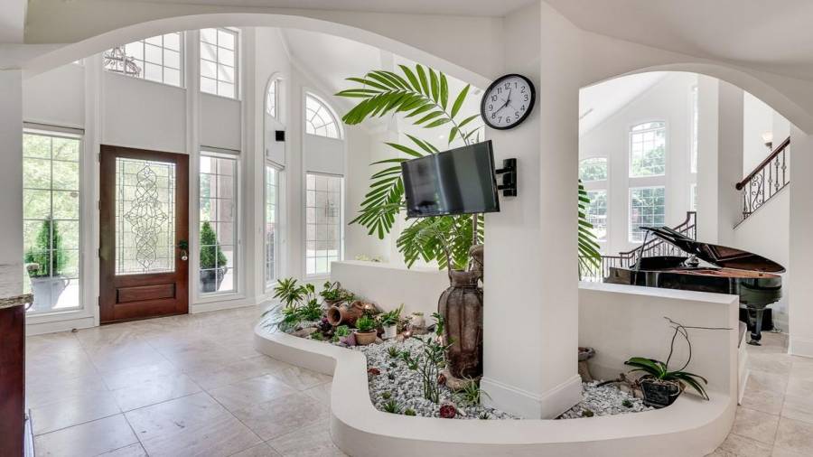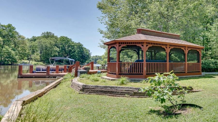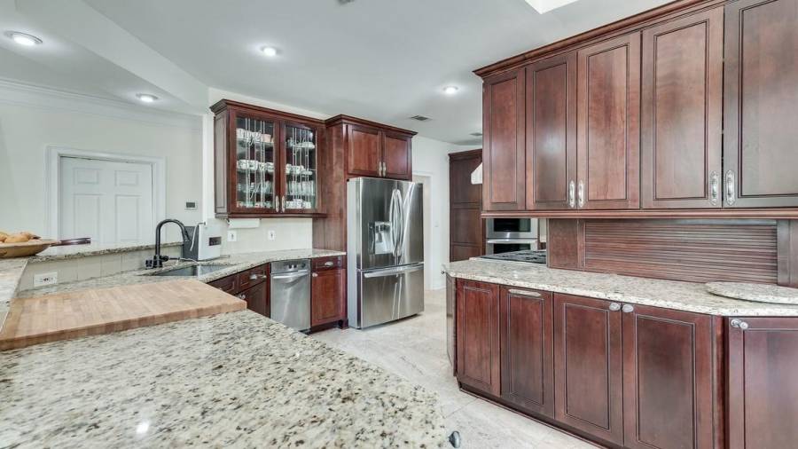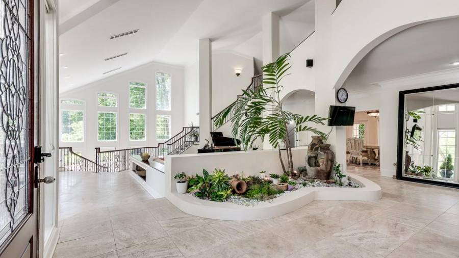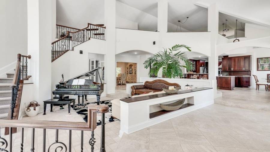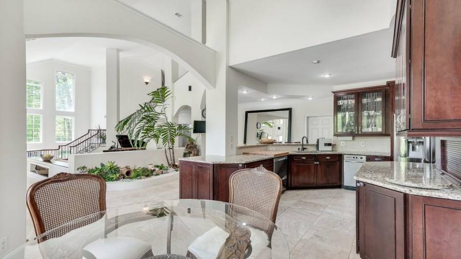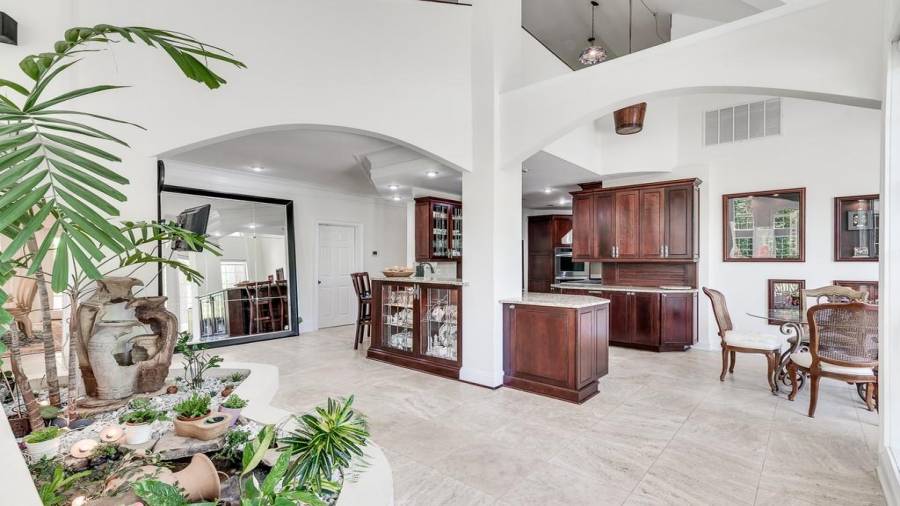 Your private, lakeside retreat awaits! Follow the tree lined drive past lake fed ponds and lush landscaping onto 2+ acres set on Cardinal Lake. Manicured walkways lead to the screened in gazebo $ the boat dock. After a day on the water, retire to the elegance awaiting just beyond the grand columns at the entry to this beautifully renovated estate home. A soaring foyer greets you w/ its rock garden & water feature. 2 levels of family areas await to your left, both w/ lake views through floor to ceiling windows. Or turn to the gourmet kitchen with 2 pantries, dbl ovens,