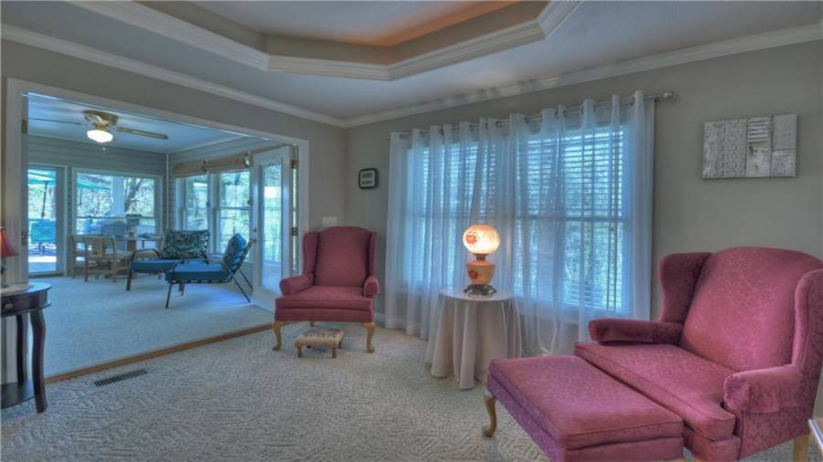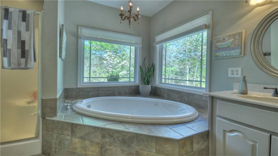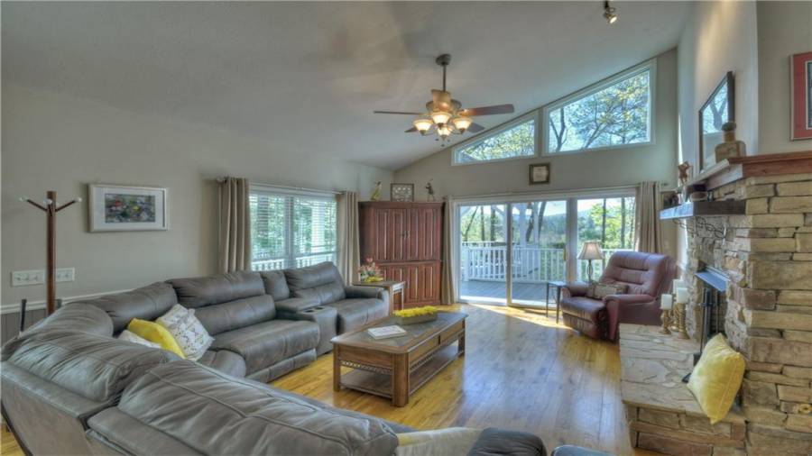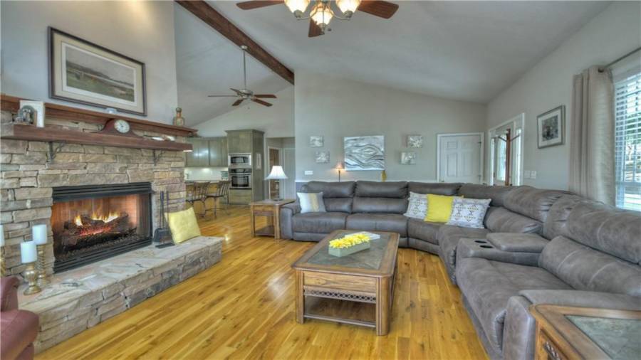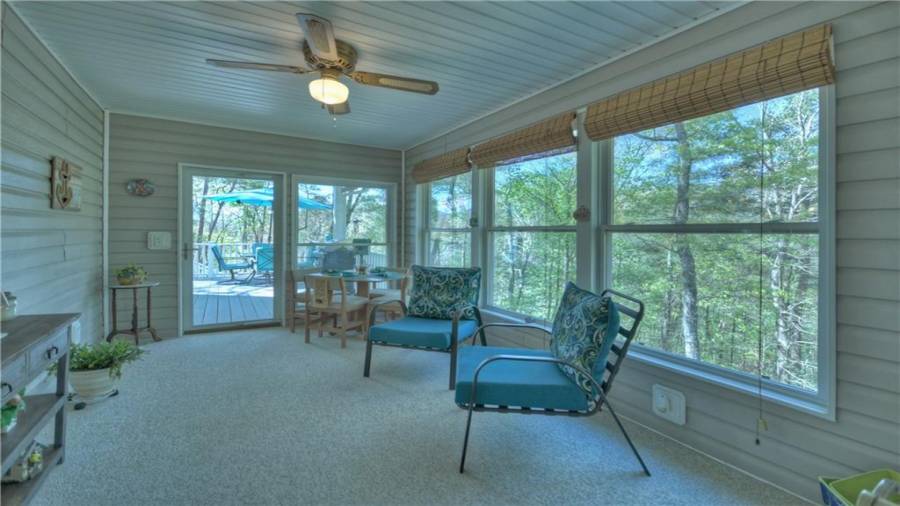 Wow! Rare to find a one level, maintenance free home with Mountain Views, Golf Course frontage, and Fishing Pond! 1st time on the market, this one owner, 3BR/3.5BA home is located in popular Buckhorn Estates, located between Ellijay & Blue Ridge w/all paved roads, hi-speed internet & low HOA fee of $200 per year. This light, bright & airy home features vaulted ceiling in great room w/2 sided fireplace. Dining area, well appointed kitchen, plentiful cabinets, 2 large bedroom suites on main, including master with double doors opening to lovely sunroom.