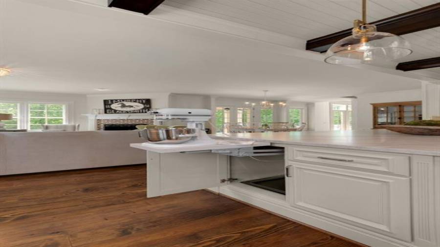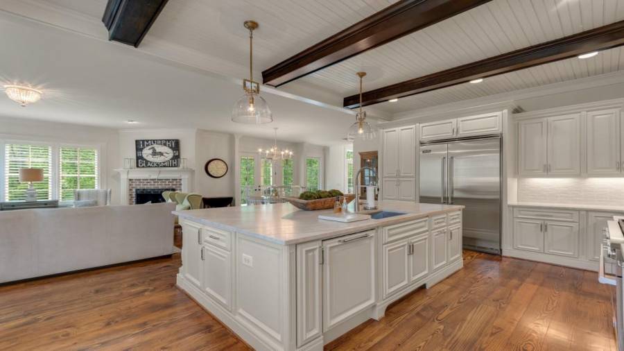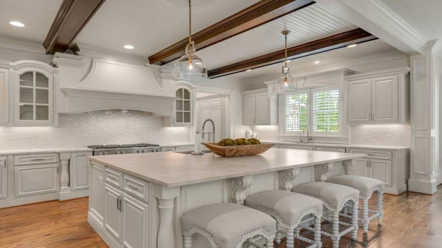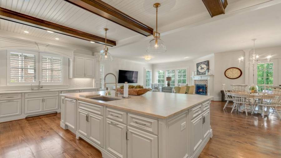 : Breakfast Bar, Cabinets White, Keeping Room, Kitchen Island, Stone Counters
