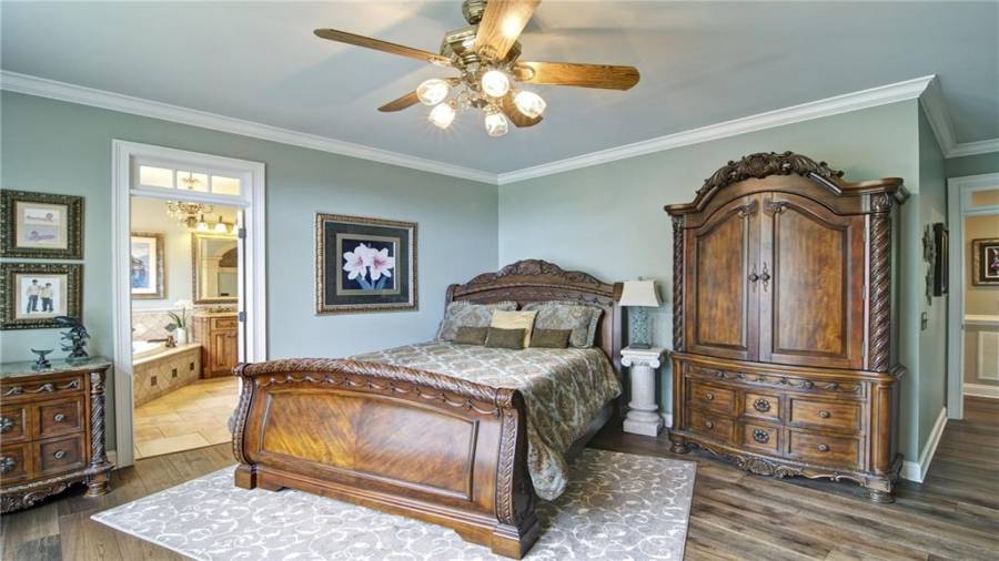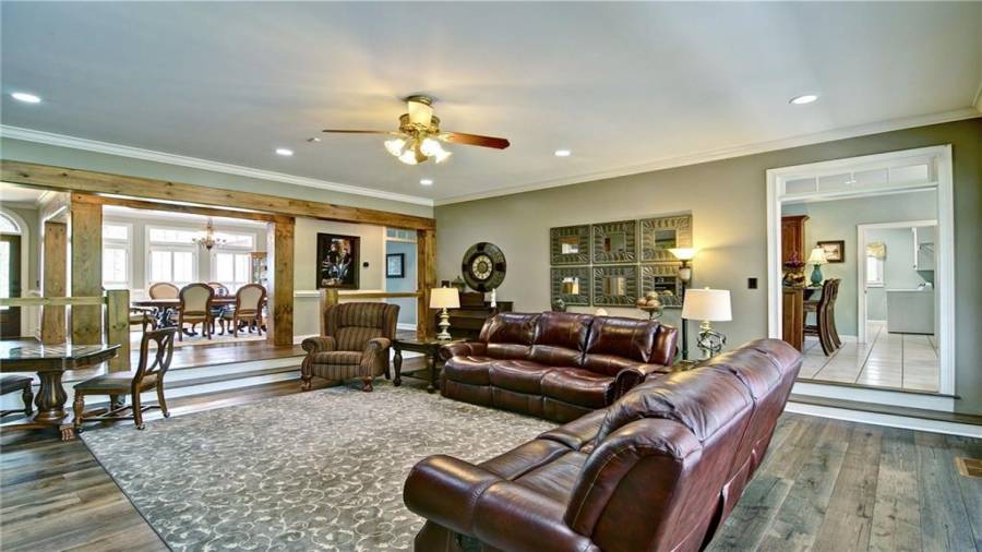 This home’s sense of calm is perfectly in keeping with its idyllic country setting. Nestled on 6+ acres of gently rolling land, this home offers the best in rural living while still only minutes from town. This executive level home is an escape to the space and fresh air of country living. Take in the majestic sunset over the fields from the front door. Enjoy the water feature in the back of the home and the quiet privacy found there. Inside this beautiful home is a large chef’s kitchen and a large living room with windows overlooking the manicured back yard.