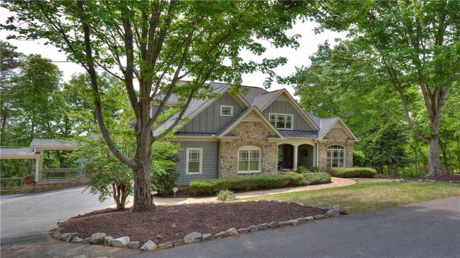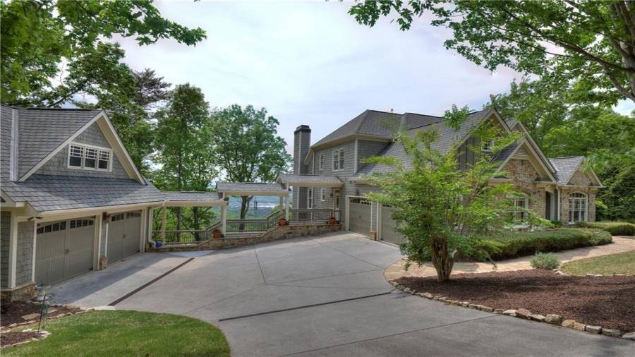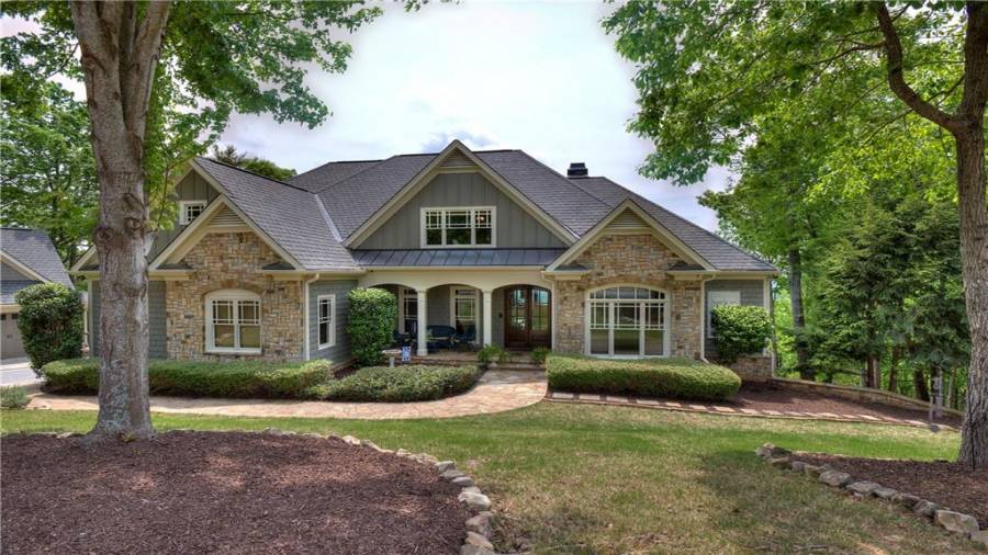 Beautiful Craftsman style home in gated community offers incredible views from every level. Built by Scott Homes, the highest quality construction and carefully selected upgrades are evident throughout the property: flagstone front walk and front porch, 10’ ceilings, warm hardwood floors in main living areas, four gas fireplaces, and coffered ceilings, to name a few. Step from the Foyer into the open concept Family Rm, Kitchen, Breakfast area and Keeping Rm and see the fabulous, sweeping views through the wall of windows. Chef’s Kitchen features Wolf and Subzero