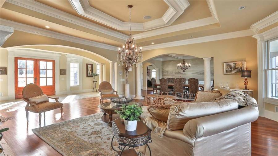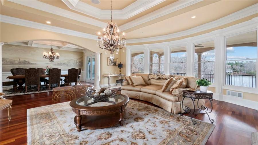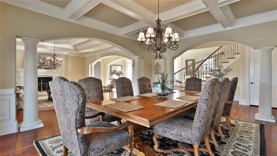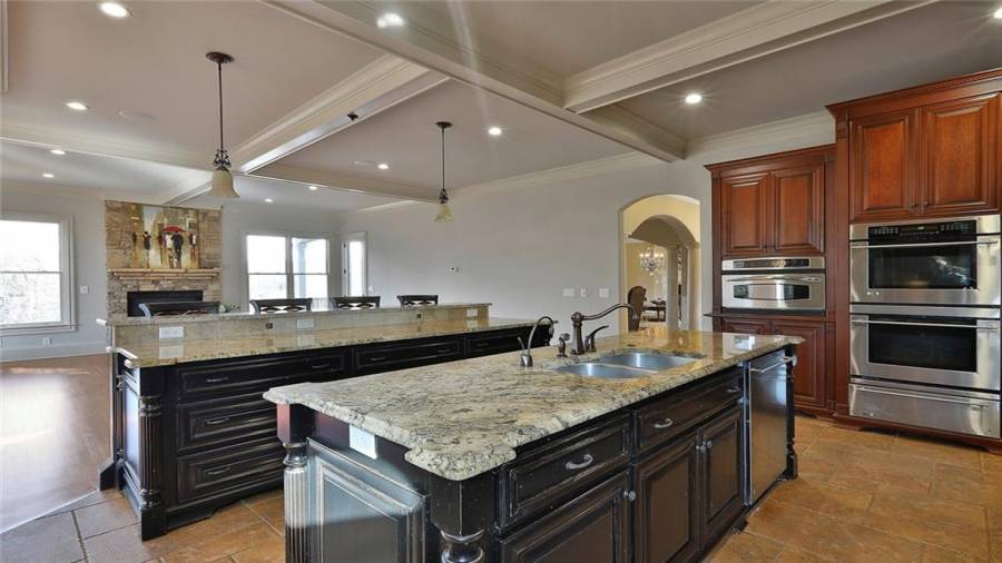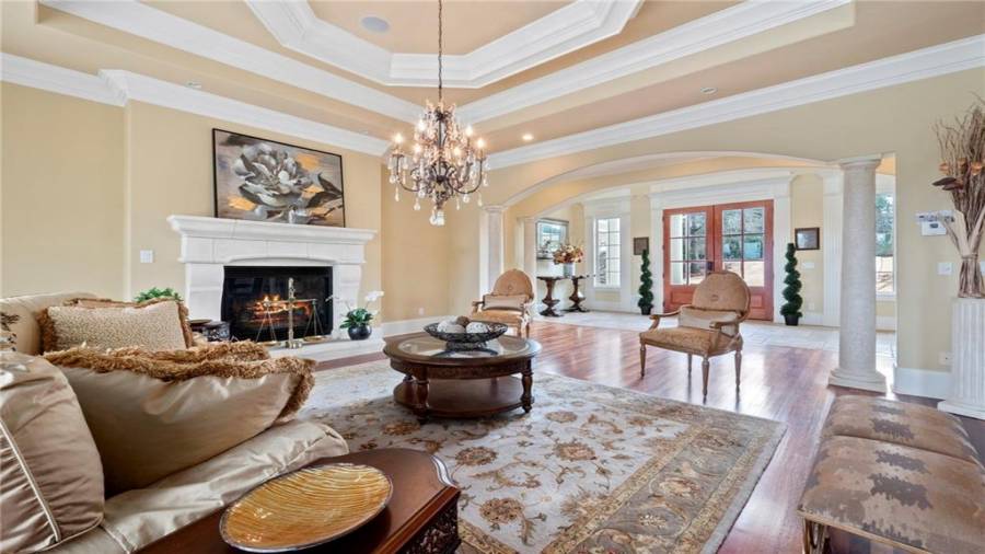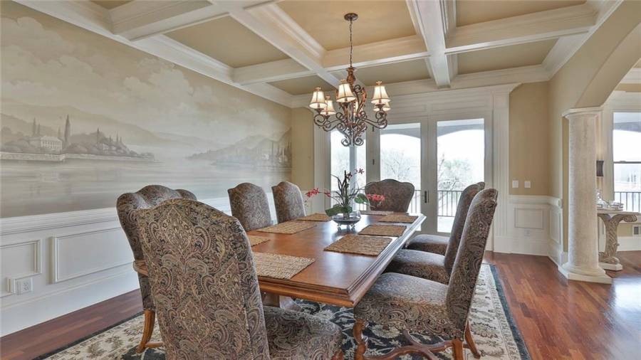OUTSTANDING EUROPEAN LAKEFRONT MASTERPIECE, PERFECTLY SITUATED ON A PREMIER PENINSULA SHAPED 1 ACRE LAKE LOT, WITH INCREDIBLE BACKYARD RESORT INCLUDING SPECTACULAR INFINITY STYLE PEBBLE TECH POOL, SPA, AND WATERFALL, PLUS PANORAMIC WATER VIEWS AS FAR AS YOU CAN SEE! SOPHISTICATED ELEGANCE custom designed and masterfully created featuring approximately 9000 square feet of unparalleled luxury and every imaginable upgrade! Grand spiral stair case, stunning 10-18' ceilings, intricate millwork, 3 fireplaces solid 8' doors on all levels, separate in-law/teen apartme