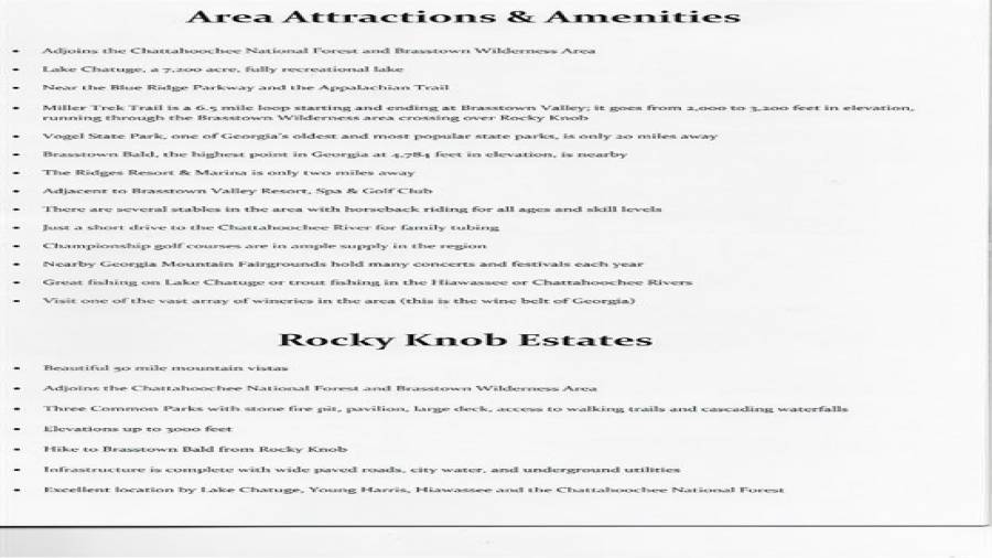 Gated community with spectacular views AND property heights that may reach up to 3.000 feet ABOVE SEA LEVEL! Amenities include fire pit and social area settings, hiking trails, and two large decks overlooking mountain views for entertaining! This subdivision is just minutes from Brasstown Valley Resort which has horse back riding, golfing, tennis, swimming, Fitness Center,Spa, Massage, and great restaurants when you want to get away!