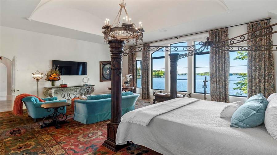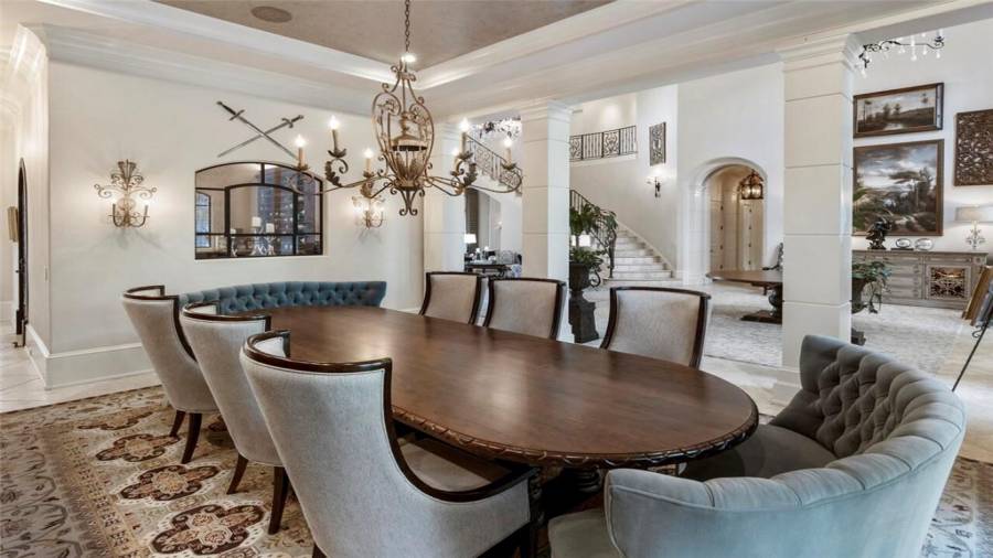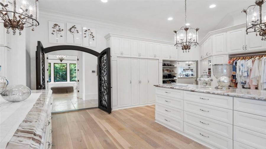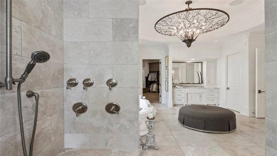 : High Ceilings 9 Ft Main, Double Vanity, Tray Ceiling(s), Walk-in Closet(s), Beamed Ceilings, Entrance Foyer 2 Story, Bookcases, Elevator, Wet Bar, Sauna