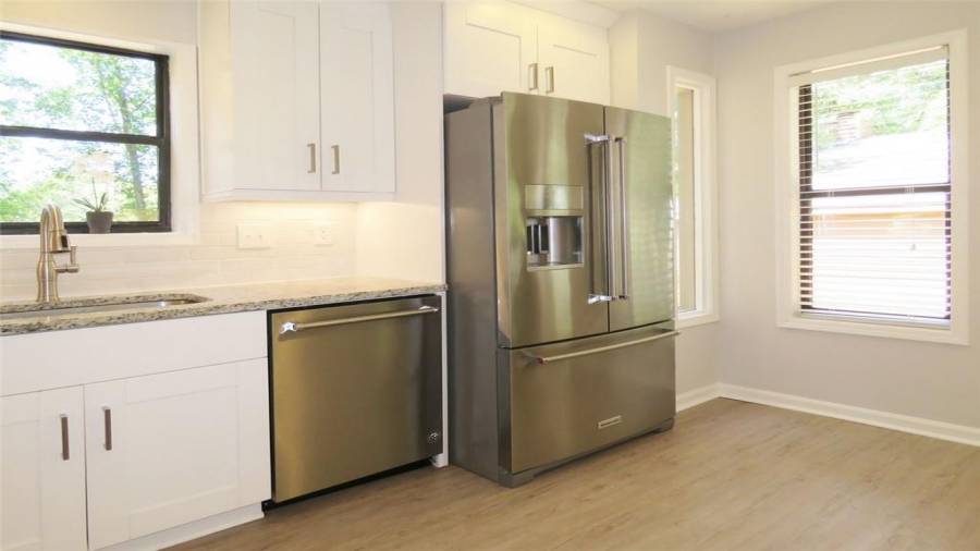 Location, Location, Location! Beautiful, move-in ready home blocks away from the action of the Historic Marietta Square! This spacious and light filled home has the Master bedroom on the main, with a door to the back porch! Newly updated Master bathroom features custom white tile shower with glass enclosure! Main level has new easy maintenance luxury vinyl tile. Enjoy cooking in the recently updated kitchen which boasts white subway tile backsplash, Kitchen Aid Stainless refrigerator, Microwave, and Kitchen Aid quiet dishwasher!