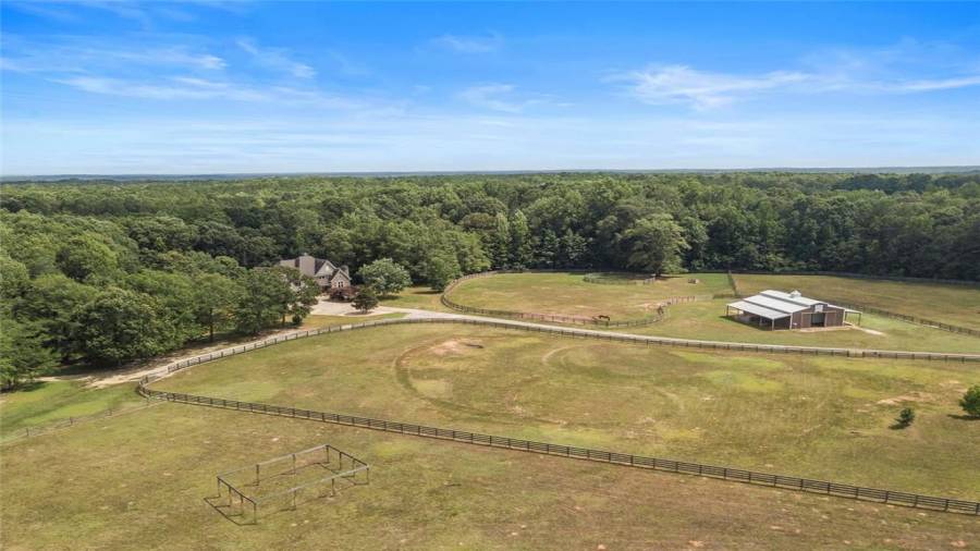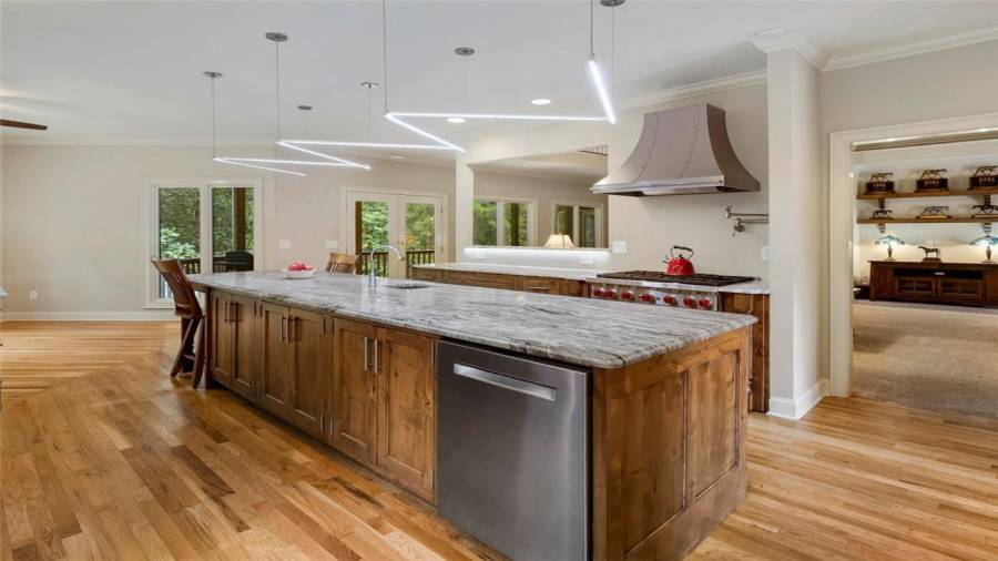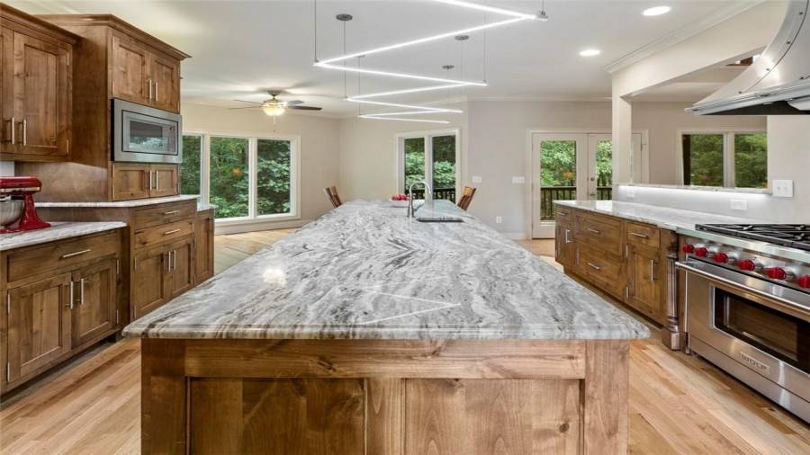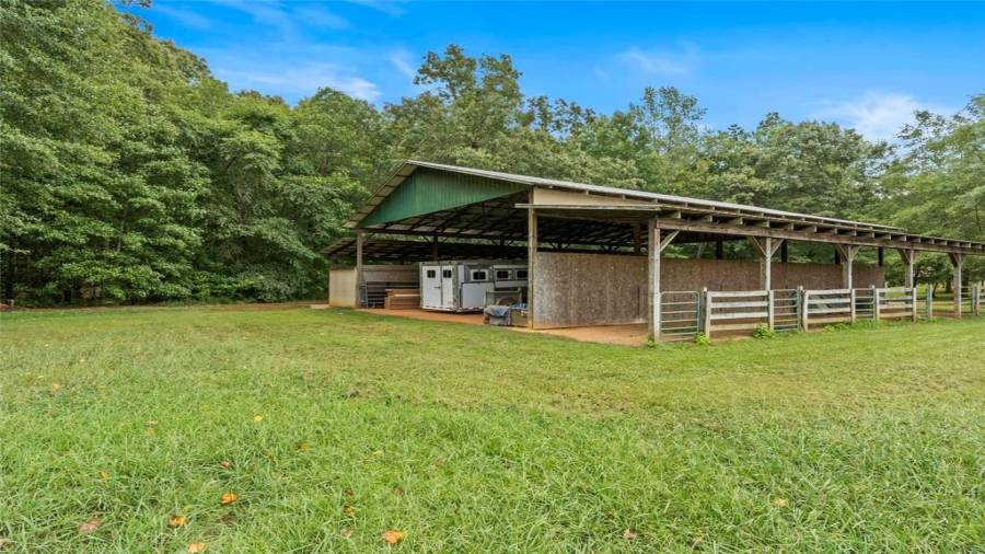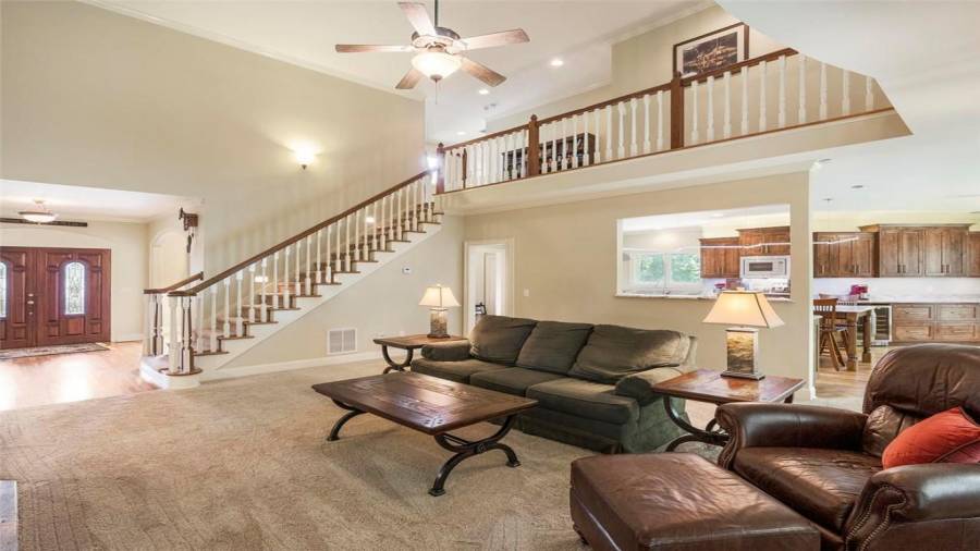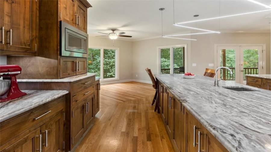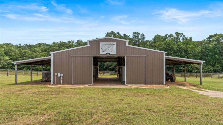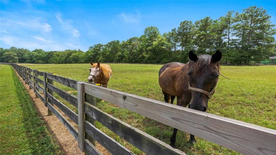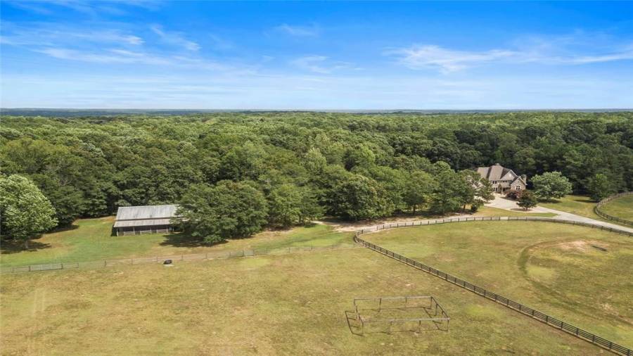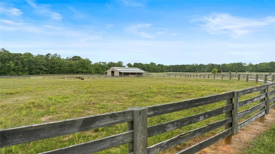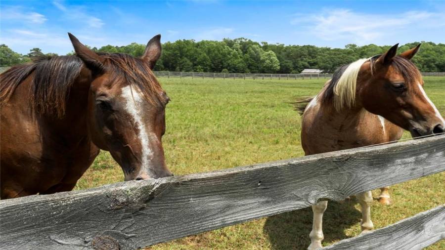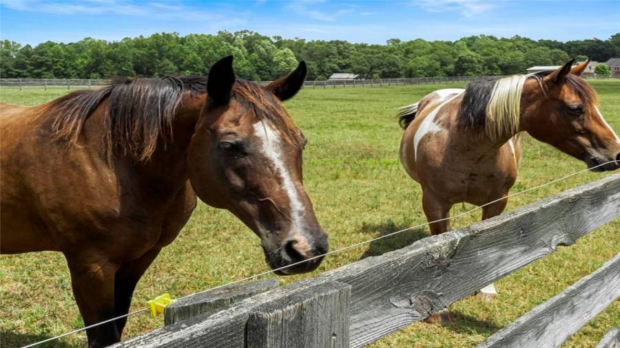 Luxury meets lifestyle at this 45-acre equestrian estate in Moreland, Georgia. This home features high ceilings, an abundance of natural light, hardwood floors, 5 bedrooms, and 4 bathrooms. Bring out your inner chef in the renovated five-star $100,000 kitchen complete with professional-grade stainless steel appliances, a 12’ island, wine refrigerator, and showstopping knotty alder wood cabinetry with built-in lighting to make midnight snacking easier. Relax after a long day on the covered back porch or in the living room by the cozy fireplace,