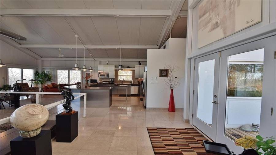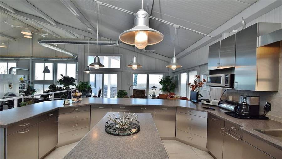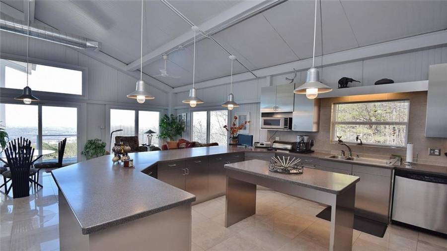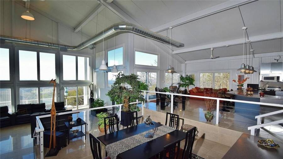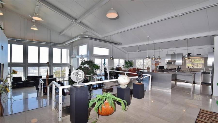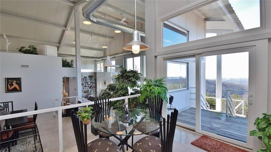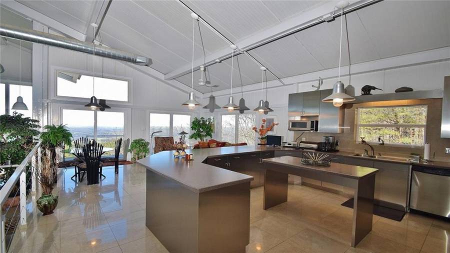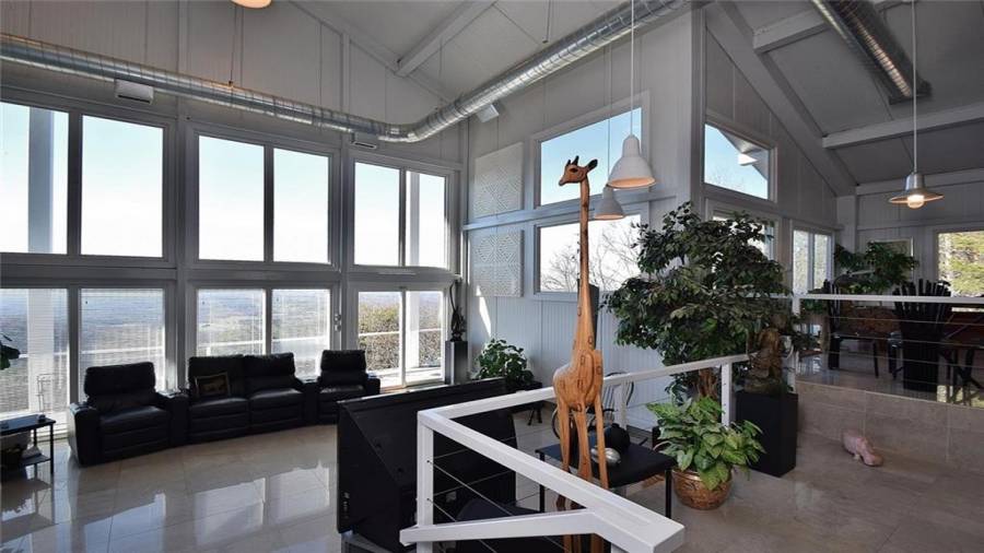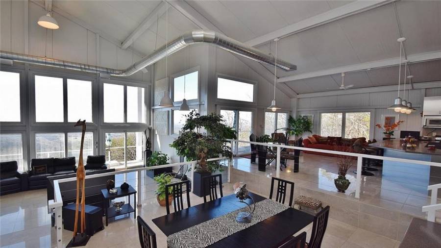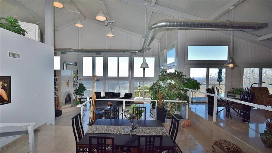 Dramatic sunrises, sunsets, and stunning vistas for miles. Experience developing storms as they evolve. Witness “shooting” stars and meteor showers. .all from your bed or decks.. This unique contemporary, open concept, industrial steel home, nestled on 20+ acres on the side of a mountain top is the perfect destination for anyone who dares to be on the road less traveled. Floor to ceiling windows, 2 story soaring ceilings, kitchen w/SS appls. & cabinets, large island, polished porcelain tiled floors, keeping, dining room, great room w/fplc, are just a few of the