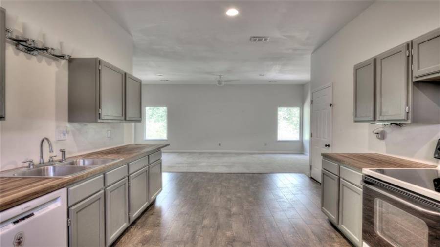 : Laminate Counters, Kitchen Island, View To Family Room