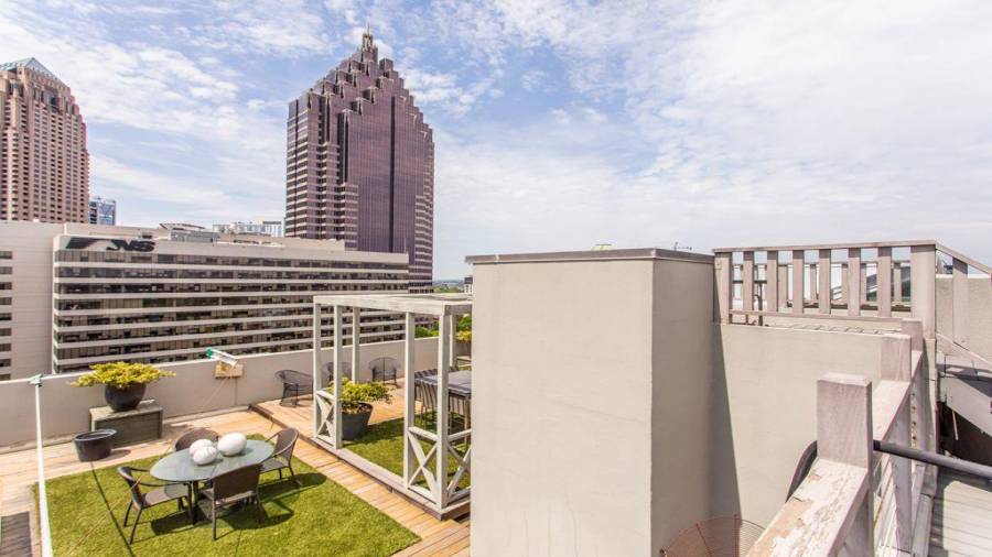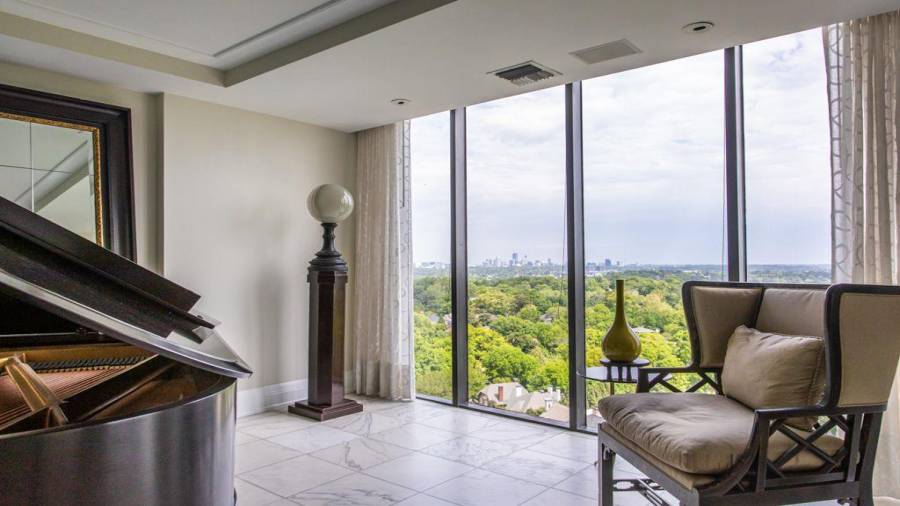 Own the Penthouse Home of Famed Designer Jerry Pair. Colony House 1407 is the entertainer’s dream, this magazine worthy one of a kind home with breathtaking views over Ansley Park from both living levels of your home is only surpassed by the even more stunning panoramic views from your private rooftop terrace. This is Luxury. The gracious split level foyer opens to a magnificent open concept living space. The living room features marble floors, floor to ceiling windows, and a cozy fire place. Kitchen features Gaggenau and SubZero appliances, and abundant storage.