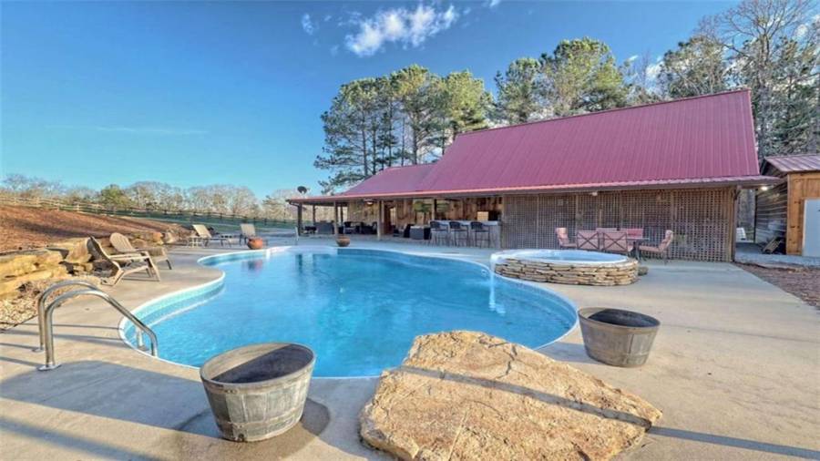 Absolutely BREATHTAKING 17+/- acre creek and National forest bordered property that includes darling 3 bedroom/2 bath cabin, extraordinary 60 x40 barn with all the bells and whistles, in-ground salt water pool w/hot tub, 4-stall cattle barn, workshop, carport and so much more! Upon arrival you will notice the stunning & beautifully fenced pasture land leading to the completely private cabin that has been newly renovated and features appealing rocking chair front-porch, updated interior with close attention to detail that will impress the most finicky buyer. The b