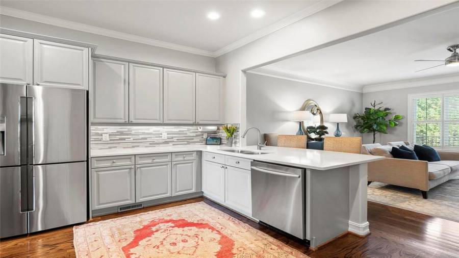 This spectacular newly renovated townhome features High ceilings, pristine hardwood floors, new quartz countertops in kitchen and baths, new Samsung SS appliances, heavy trim package, butlers pantry, formal dining, and great room w/walk out balcony, new carpet and a large walk in closet in the primary bedroom. The completely renovated primary bath features a double vanity and a new frameless glass shower. Prime location minutes to Buckhead/Lenox/Brookhaven. Walk to Marta, shops and restaurants. This home has too many other upgrades to mention. The place is a true 10!!