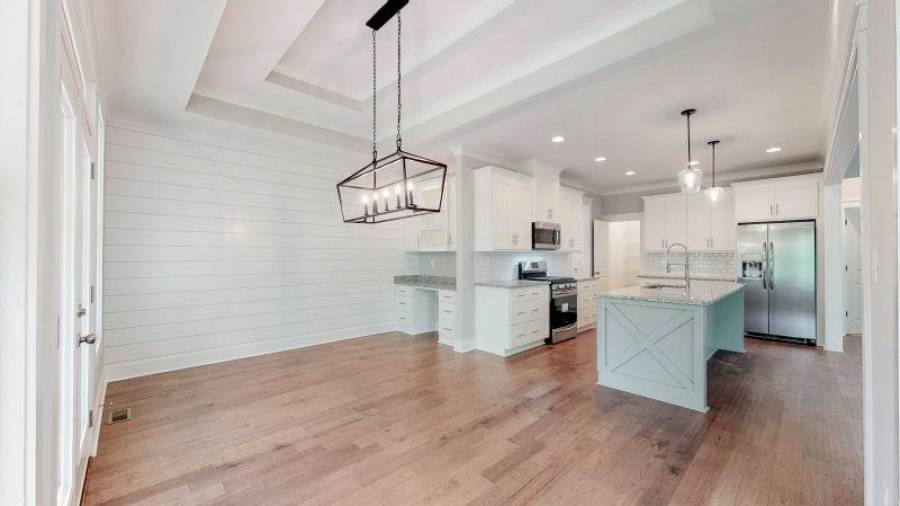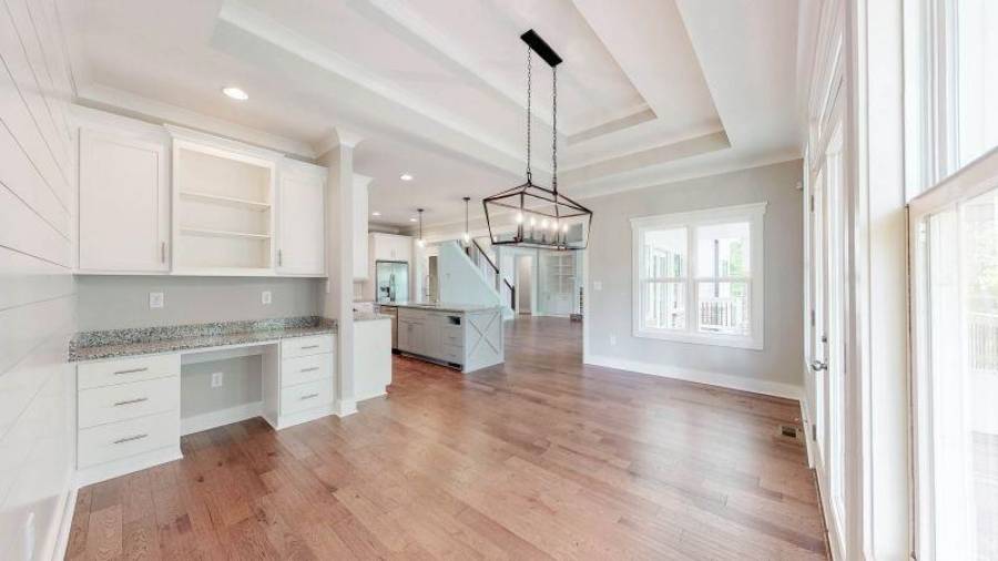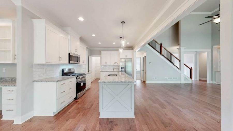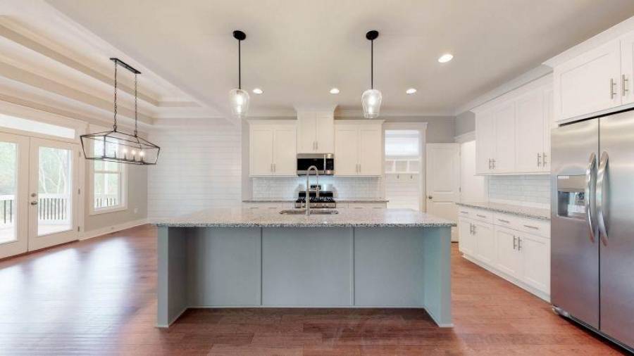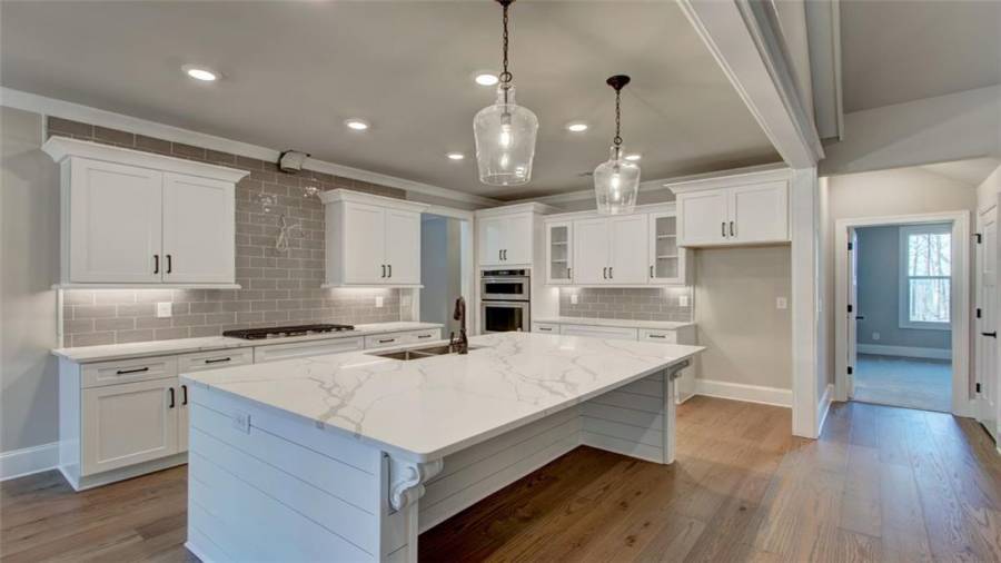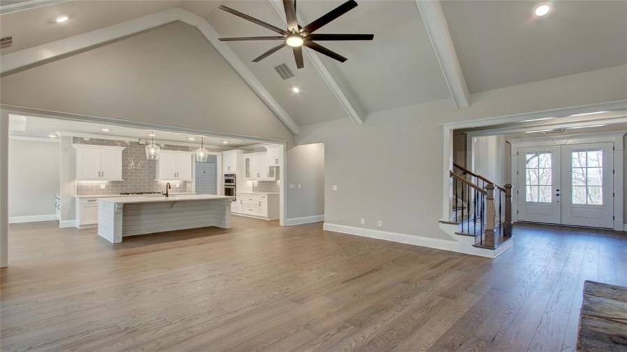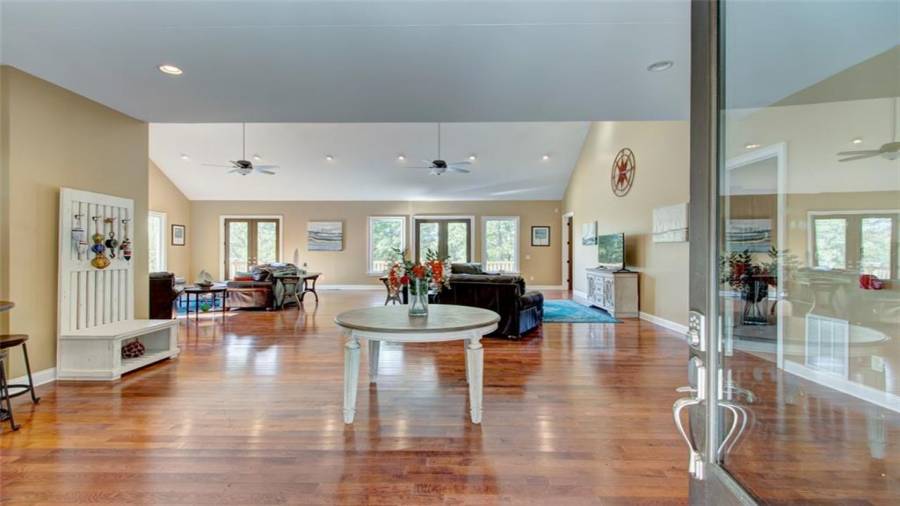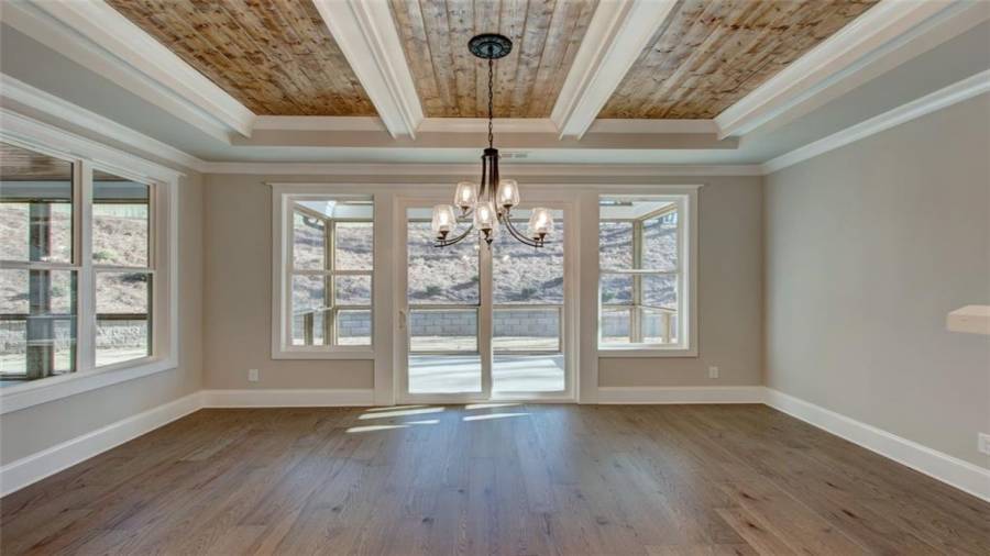 Gorgeous new construction home in Dawsonville’s newest gated Lake Lanier neighborhood, The Reserve Club and Marina. The Embry Hills house plan by Frank Betz is a Craftsman design with defining features such a covered front porch, shed dormer, steep gables, exterior stonework and stained beams. Once inside the main floor has an open plan featuring vaulted family room, spacious kitchen with island and dining area. Just off the family room and kitchen is a screened porch with fireplace to enjoy morning coffee and family gatherings. Situated on the main level, the owner’s