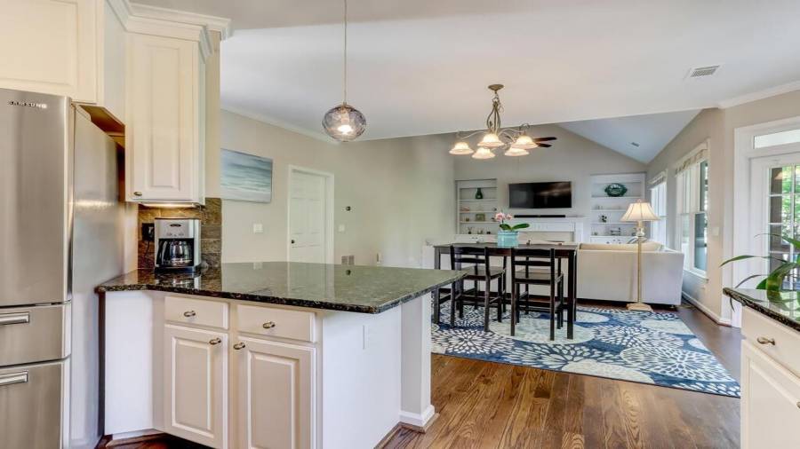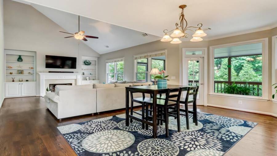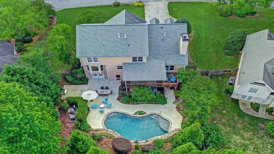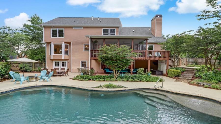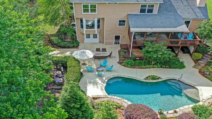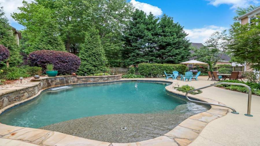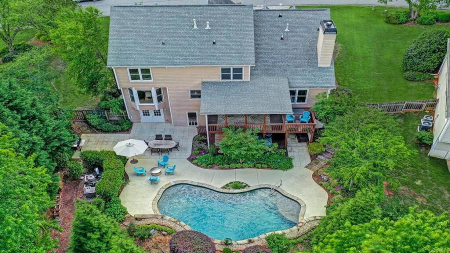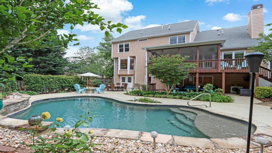 Priced below recent appraisal! This beautiful home features stunning hardwood floors & private home office. The kitchen is the perfect space as it overlooks the breakfast area & great room! Enjoy relaxing on the covered screened porch that overlooks the private backyard w/ established tree line. The terrace level is perfect for entertaining friends & family w/ a finished kitchen/bar area, family/game room, media room, full bath. The backyard is a true entertainer’s delight. Heated salt water pool w/sun area & waterfall is sure to be your favorite feature of the home!