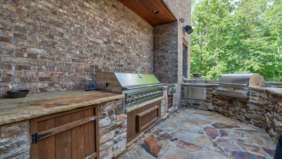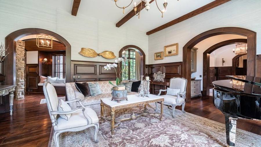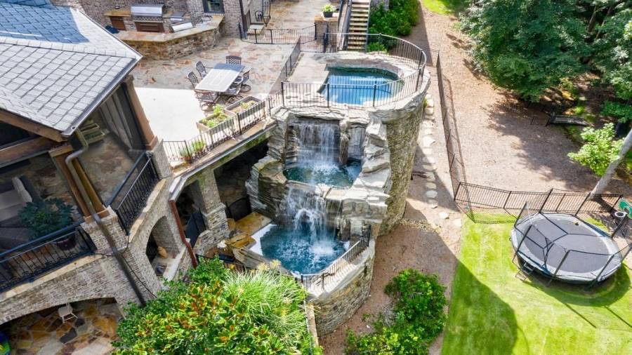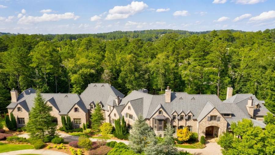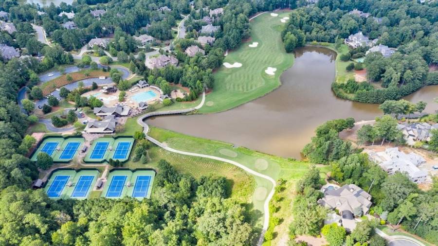 This grand custom home in sought-after River Club is perfectly situated on a rare double lot of 3.5+/- acres overlooking the golf course. Beautiful details throughout include oversized living spaces, detailed woodwork, cathedral ceilings & outdoor living rooms. The exquisite estate has all the luxurious amenities including gourmet kitchen w/large island, pizza oven, barrel vaulted primary suite on main, catering kitchen, custom bar, 19 seat theatre w/IMAX projection, 2 story wine cellar, outdoor spa w/two level waterfalls, Control 4 system & porte cohere w/4 car garage.