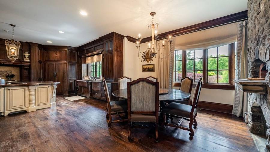 : Cabinets Stain, Breakfast Room, Pantry Walk-in, Kitchen Island, View To Family Room, Stone Counters