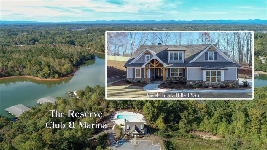 Beautiful NEW construction home with a covered boat slip in The Reserve Club and Marina- a gated Lake Lanier neighborhood! Construction will begin soon on this lovely lot w/ seasonal lake and mountain views. The Taunton Place house plan by Frank Betz is a craftsman design perfect for enjoying LAKE LIFE. The covered front porch, natural stone and stained beams are a welcoming sight. Once inside the main floor has an open plan featuring vaulted family room, spacious kitchen with island and dining area. The covered screen porch with a fireplace will be a favorite family