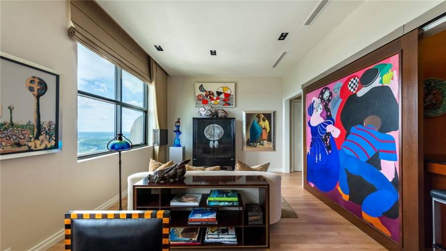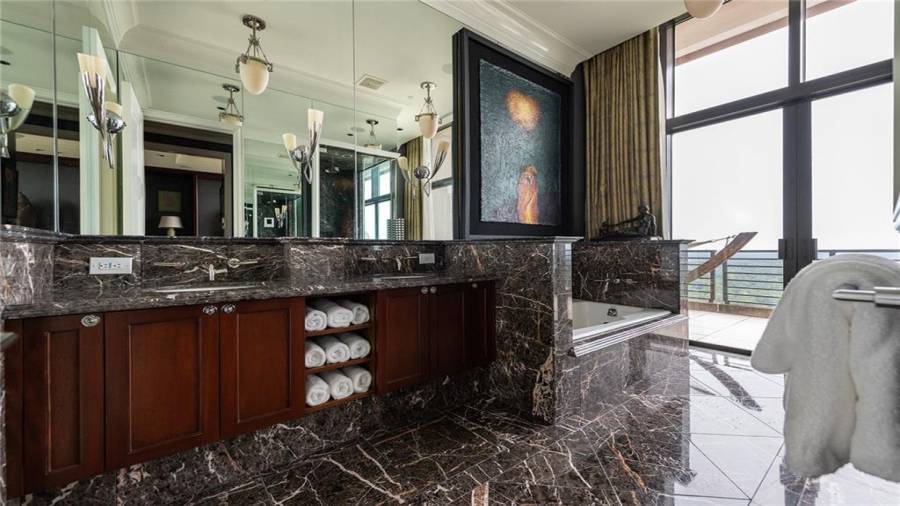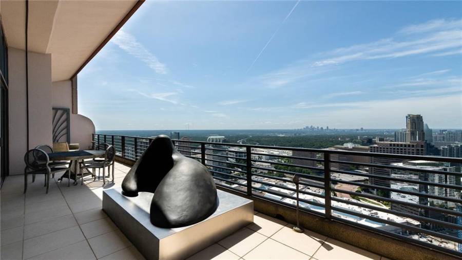 Introducing the most extraordinary penthouse offering in the heart of Buckhead, boasting sweeping 360-degree vistas from the 42nd floor of the prestigious Park Avenue. Penthouse 42PH encompasses an entire residential floor, offering spectacular indoor & outdoor entertainment opportunities. Guests are greeted in the grand gallery hall, adjoining the gracious family room, cocktail room, and banquet-sized dining room. Impressive fireside owner’s suite features a separate sitting room, sensational spa-inspired bathroom with his/her showers, auto-fill soaking tub, sauna,