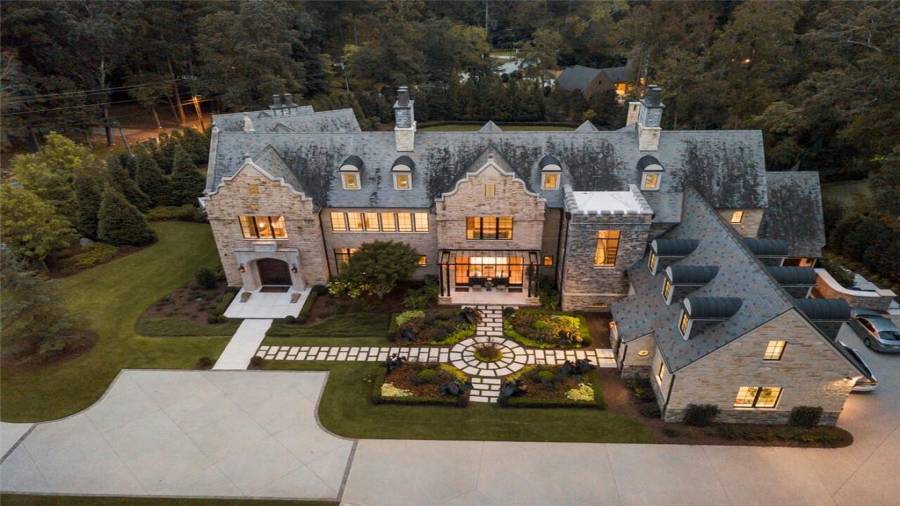 Exceptionally designed north Buckhead estate inspired by the Muckross House in Ireland. Completed in early 2020, landscape architecture and interiors are by Harrison Design. Open living spaces capture incredible property views from every room in the residence. Privately situated and overlooking the property is the owner’s suite with study and covered patio. Control4 smart home, secure, energy efficient, elevator and complete with whole house generator.