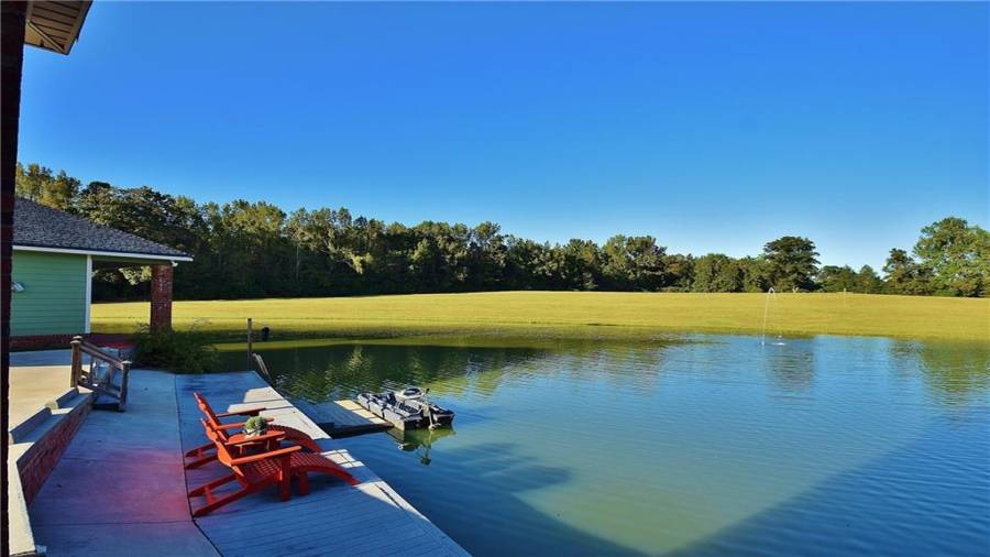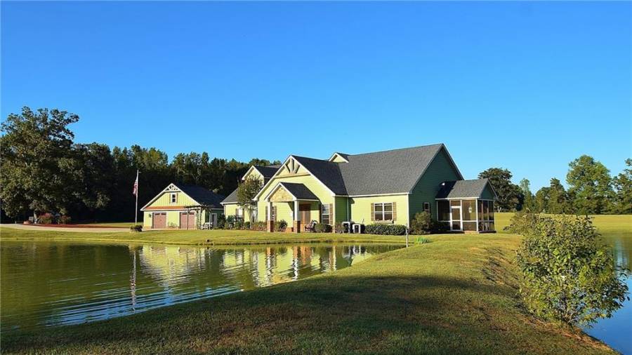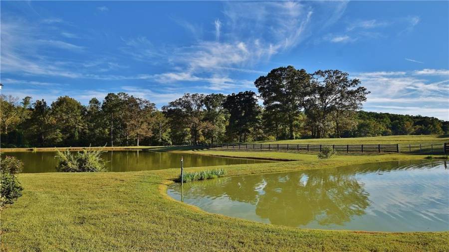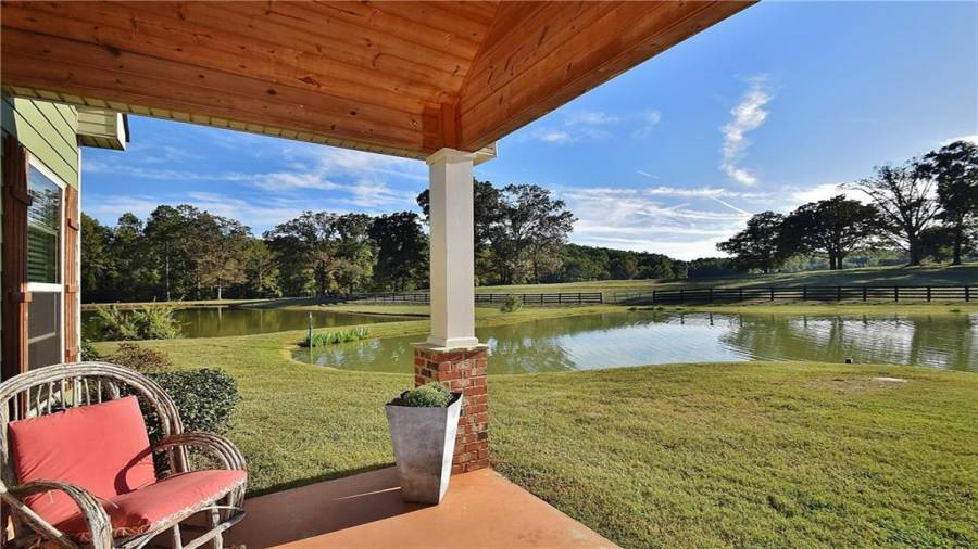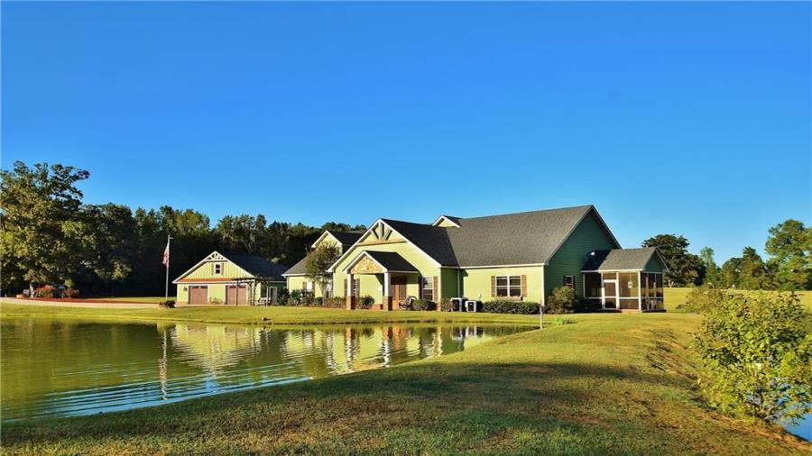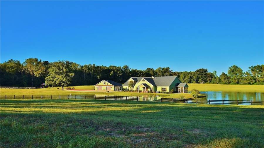 Incredibly beautiful 21 acre oasis with a lovely custom built home that reaches into the water on one of the fish stocked private lakes. The home is constructed with the highest quality material and craftsmanship.Features include two masonry fireplaces, a screened in porch plus wrap around porches. The upstairs is unfinished & includes a walkup stairway to the insulation encapsulated attic with plumbing and a/c in place to add additional bedrooms. The property includes gently laying pasture, perimeter fencing, cross fencing, creeks and woods; outdoor living at its best!