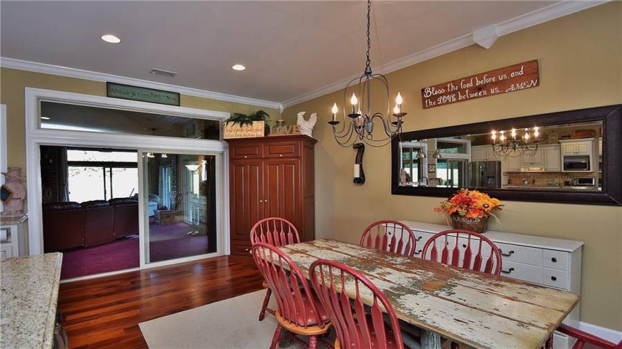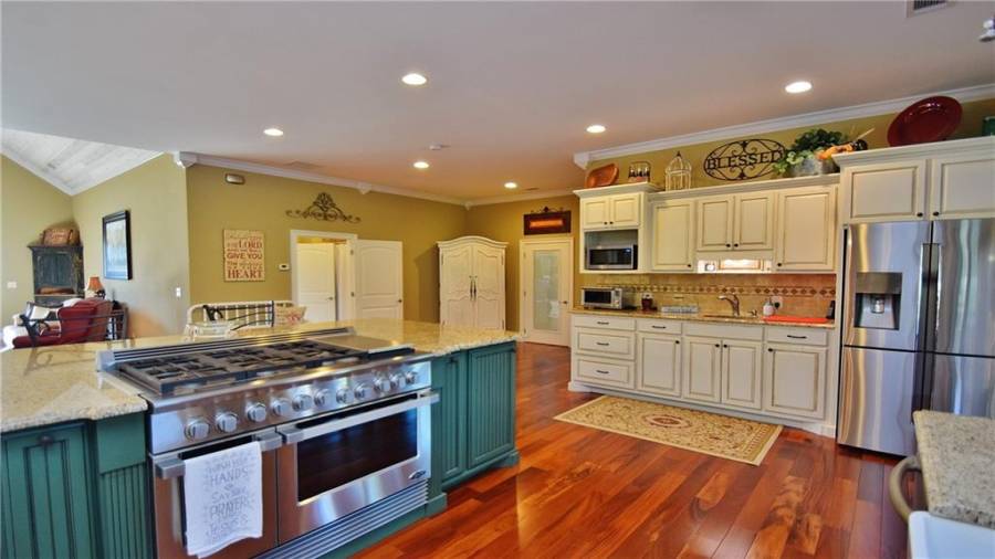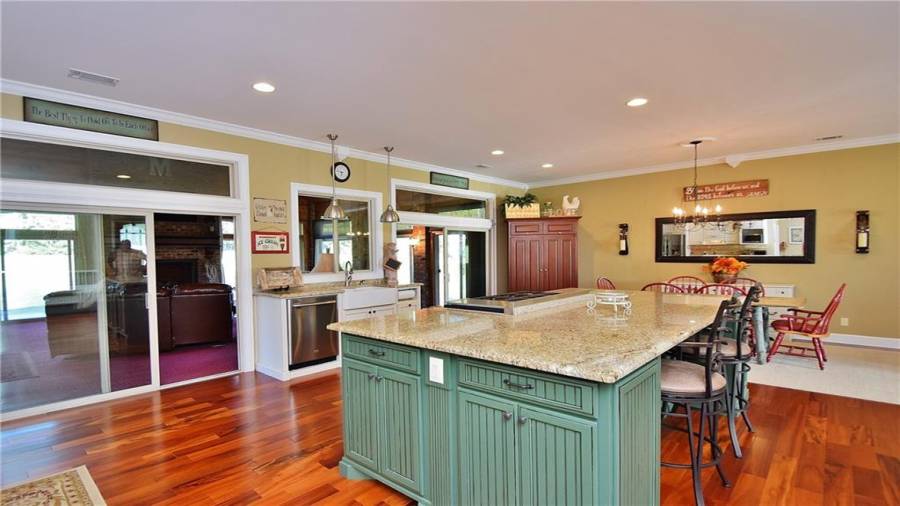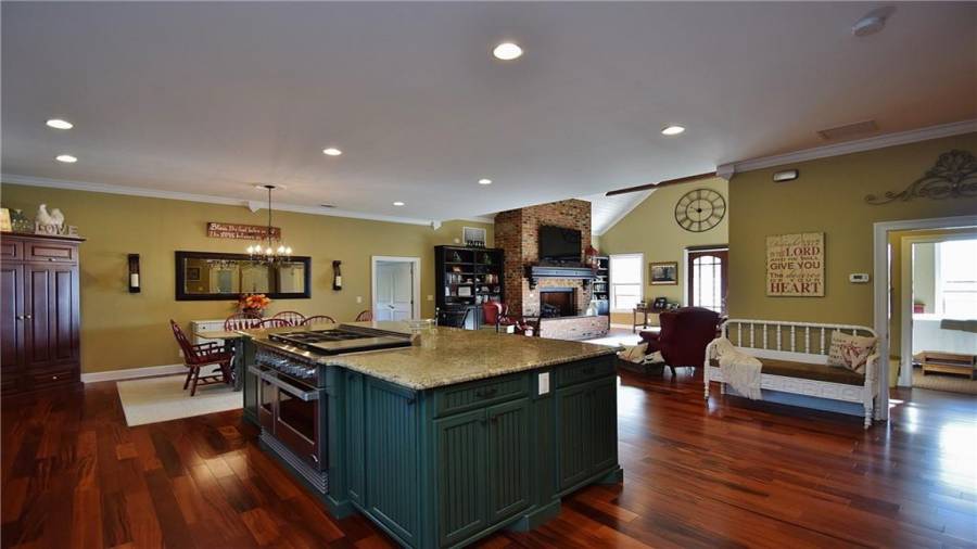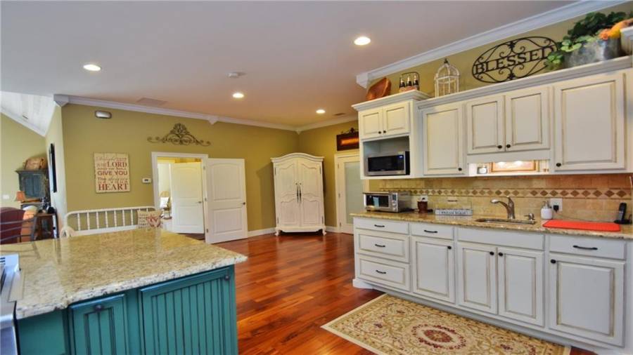: Breakfast Bar, Eat-in Kitchen, Cabinets White, Country Kitchen, Pantry Walk-in, View To Family Room, Stone Counters
