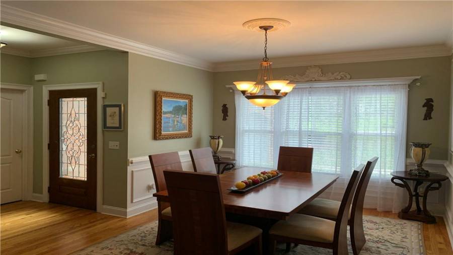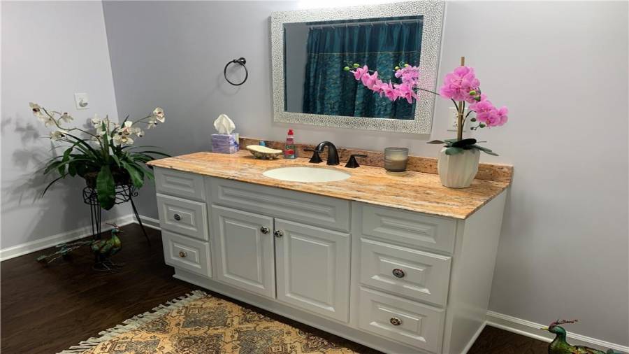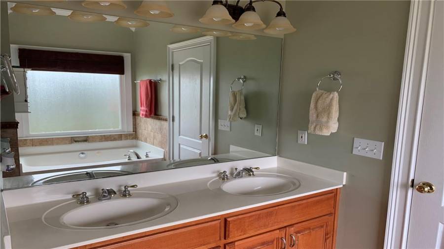 Amazing 5 BR/3full bath/2 -1/2 baths traditional style home sitting on 1.1ac. w/creek on. This charming home boasts an open floor plan with loads of natural light, hardwood floors throughout the main floor, and a lg. separate formal dining room. The kitchen is well appointed with granite countertops, tile backsplash, upgraded lighting fixtures, SS appliances, kitchen island, and breakfast room. The oversized master suite on main, an ensuite bathroom with separate his/hers vanities, separate glass-enclosed shower, a jacuzzi, and a spacious walk-in master closet.