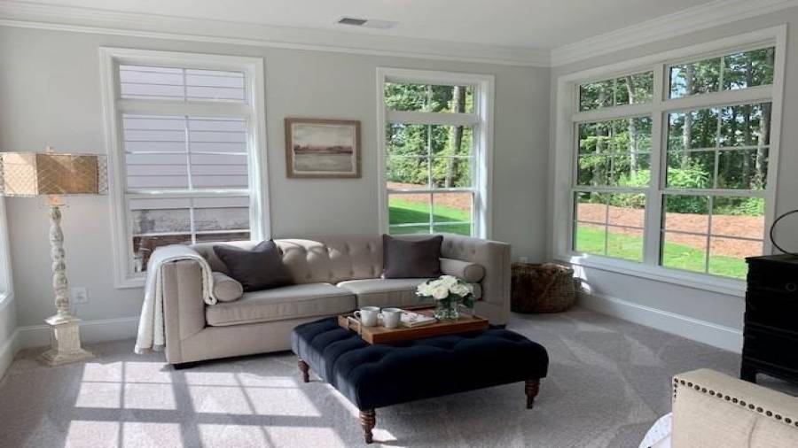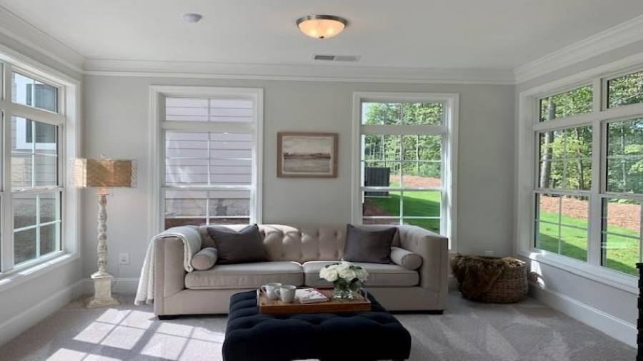 Traton Homes Promenade III B Plan. The Promenade III plan offers the most spacious family room and gathering space of all. The outdoor living area is covered and expands from the family room to the owners sitting room. The spacious kitchen offers plenty of cabinets and counter space with a “true” walk in pantry. Storage – no worries, there are plenty of storage areas. With a total of 3 bedrooms on the main level, this single story Promenade III plan is a crowd favorite! This stepless ranch checks all the boxes and is ready to welcome you home! Raeady late June 2021.