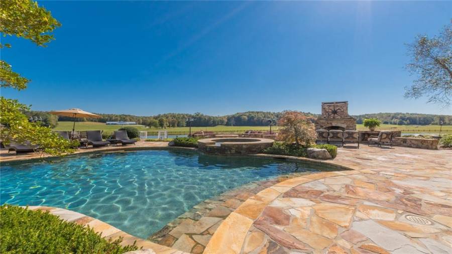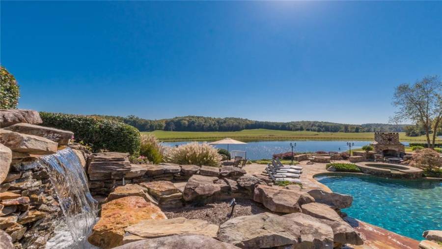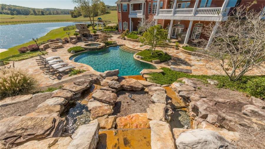 Beautiful Estate Home rests over almost 800 acres of Georgia’s most beautiful farm land, rolling hills, winding creeks & hardwoods. Located in Northwest Georgia at the foothills of the Appalachian Mountains. This Home is finished on all 3 levels w/ full kitchen on both main & pool levels, exceptional landscaped pool w/ waterfall & spa sits over lake w/ fountains & gazebo on island w/ bridge. Perfect location 50 min West of Atlanta, mins from downtown Rockmart, Coots Lake trail head on the Silver Comet Trail and Silver Comet Field regional Airport.