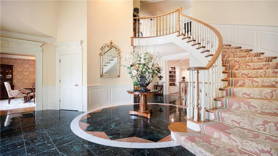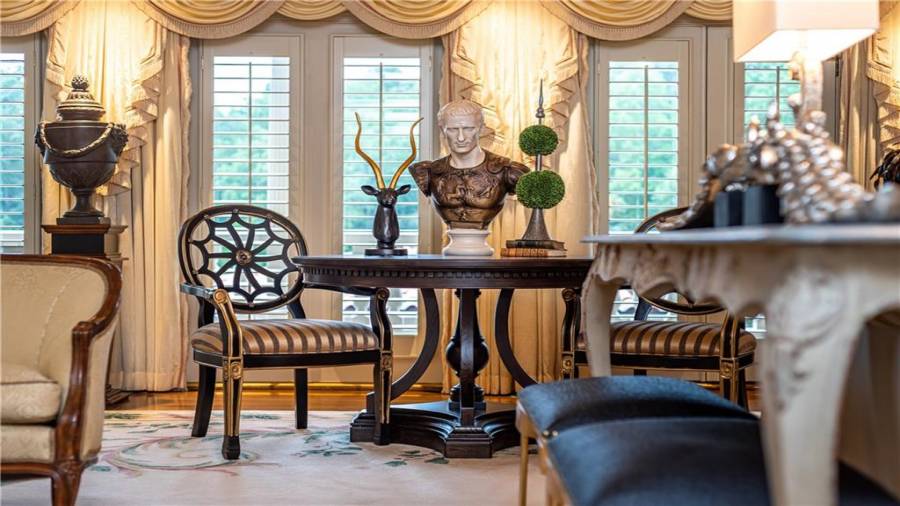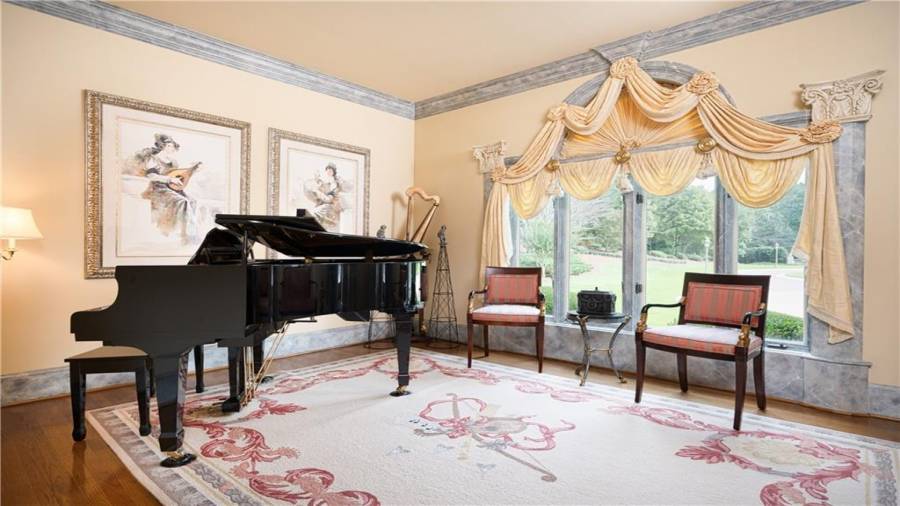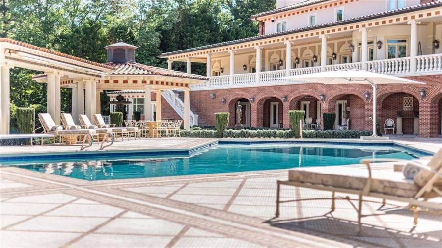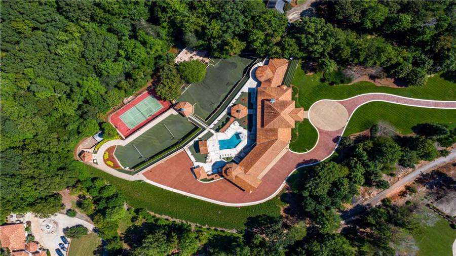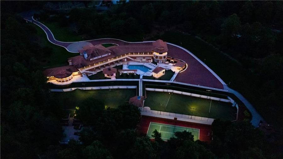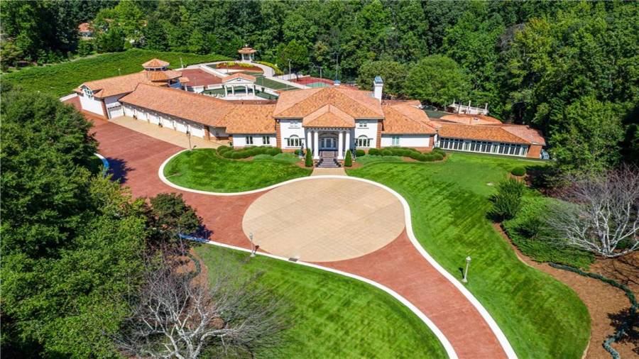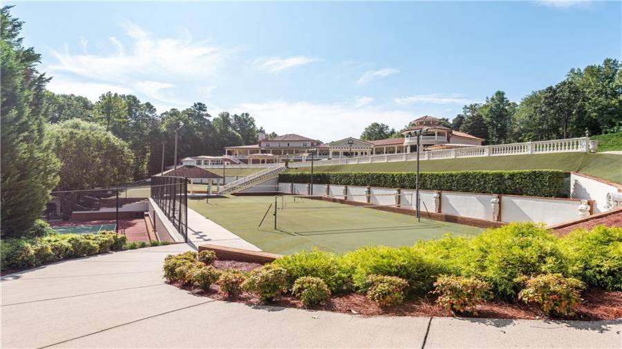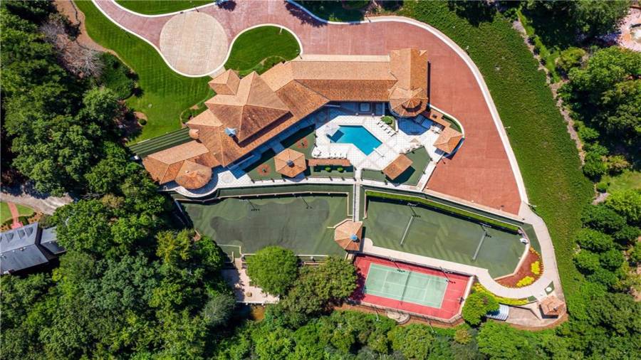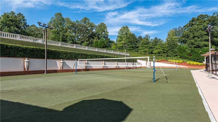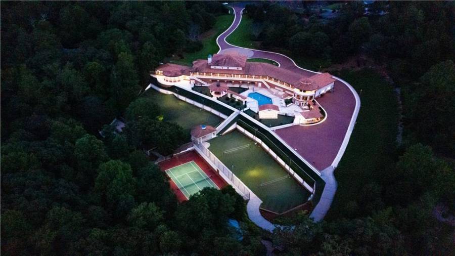 Exquisite custom home on 4.5 acres of privacy in the heart of Douglasville. Architectural details abound in this sprawling gated estate updated with state of the art security. Enter the breath taking two story foyer, with its curved staircases, before the living areas. The 6-car garage opens the expansive private oasis which features a tennis court, two volleyball courts, 19-hole putting green, a pebble tec pool and two gazebos with room to entertain more than a thousand guests. Home has custom hand carved molding throughout.