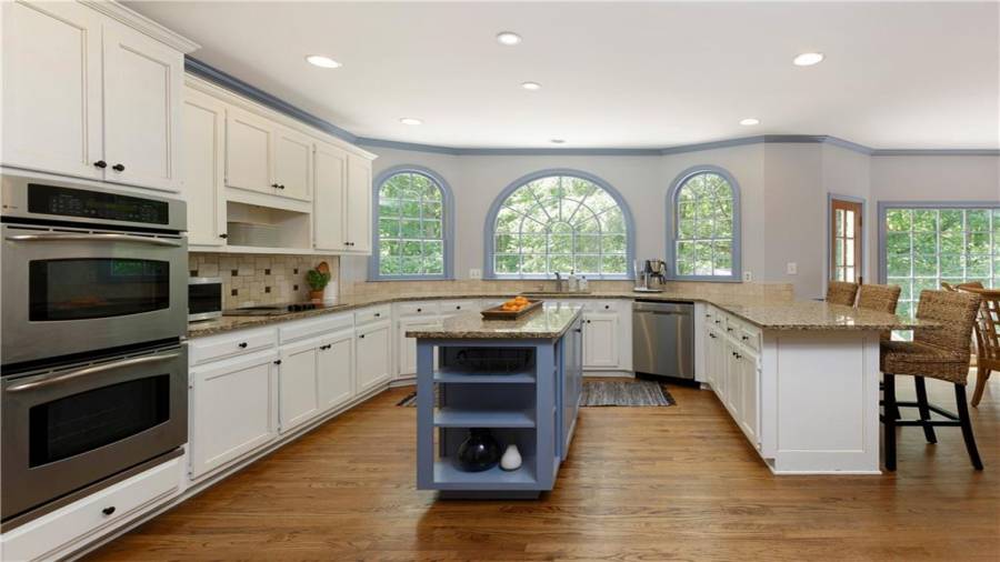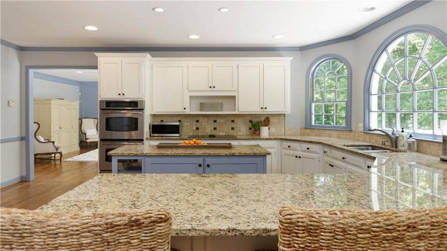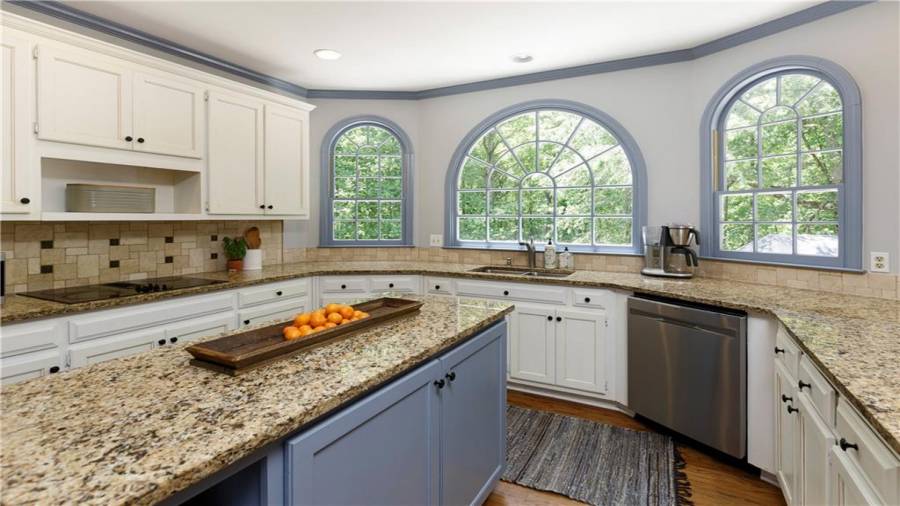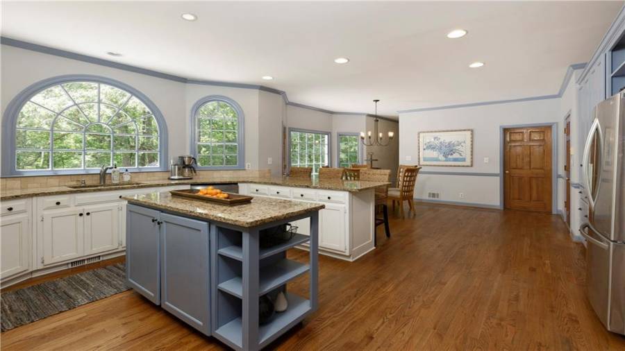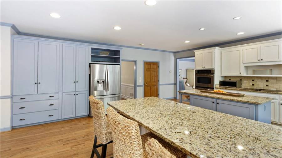 : Eat-in Kitchen, Breakfast Room, Cabinets White, Kitchen Island, Pantry, Stone Counters, Cabinets Other
