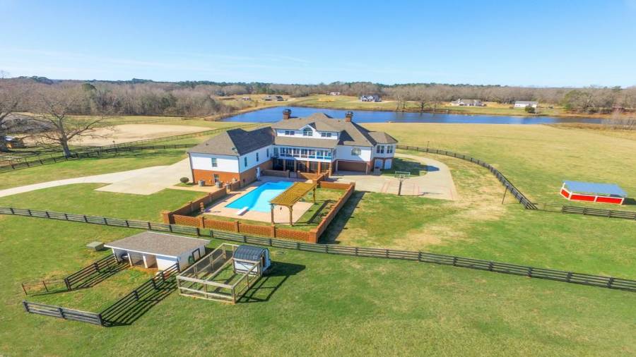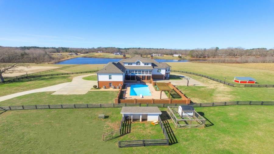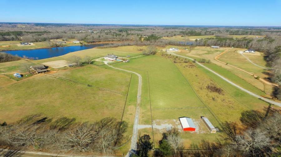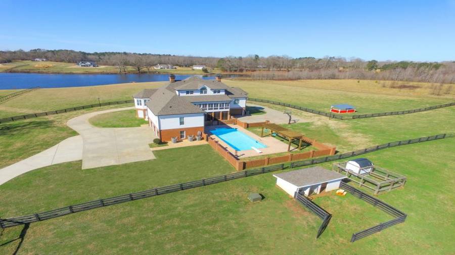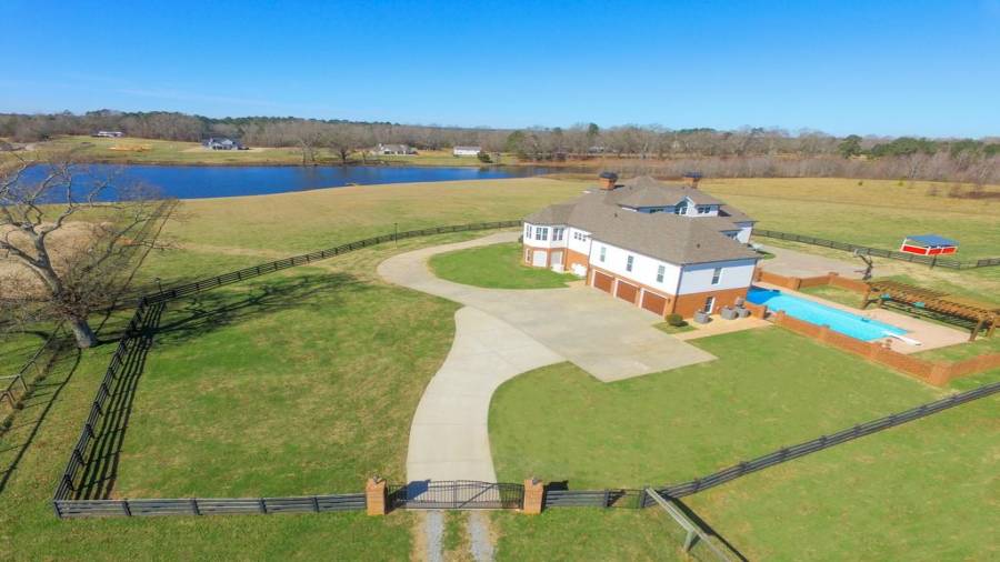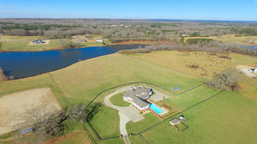 Rare opportunity in Brooks! Beautiful lakefront estate home w/approx 24.5 acres. This property for sale consists of home on 8.19 acres (Lot 9), Lot 10 which is 8.47 acres & Lot 11 with 7.76 acres. This magnificent gated property offers space for the entire family and/or multigenerational needs. Gourmet kitchen, custom millwork, spacious owners’ suite, home gym, theater/rec room, pool, smart home technology, fenced w shelter, pen, chicken coop, outbuildings for hobby farm/horses. Whether you seek the quiet of the country or love to entertain, this property is a must see.
