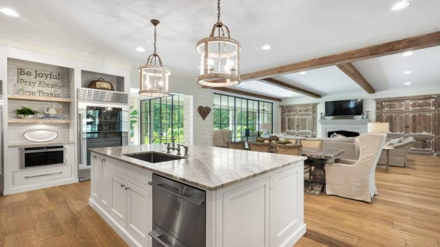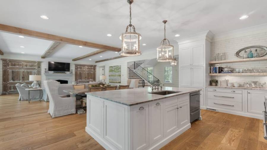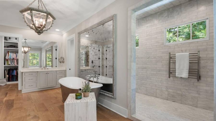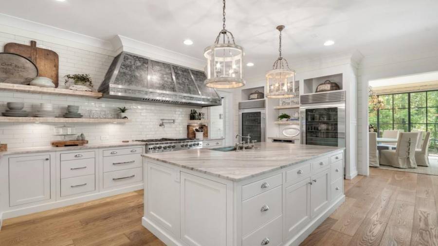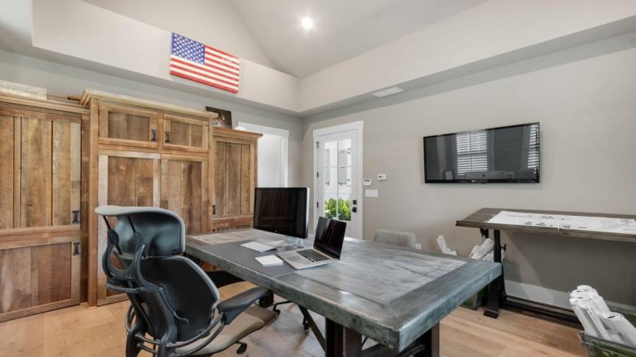 A stunning masterpiece! A custom builder’s personal home with no details overlooked. The first floor features 8″ wire brushed white oak floors throughout, high end lighting, hand carved lime stone fireplace, custom built floor to ceiling steel windows and doors overlooking a large covered porch, vanishing edge salt water pool and private back yard giving it a true indoor/outdoor feel. Kitchen features two sub zero refrigerators, commercial grade 48″ blue star range and custom zinc hood. A large prep pantry includes a standalone freezer, pellet ice maker and french door