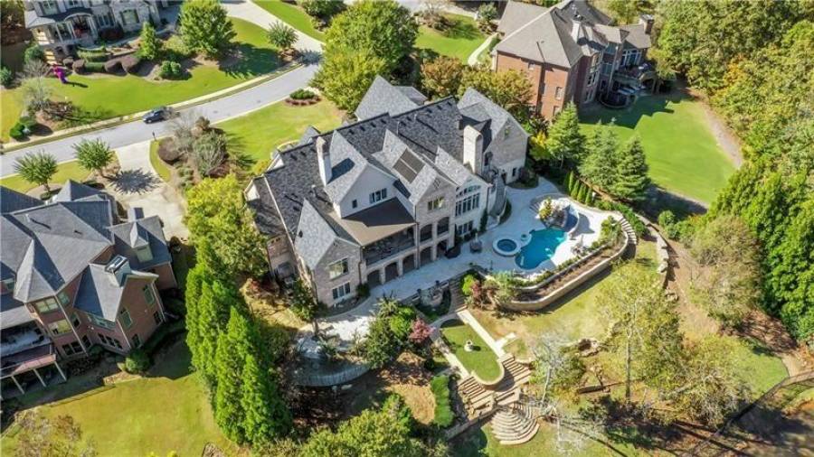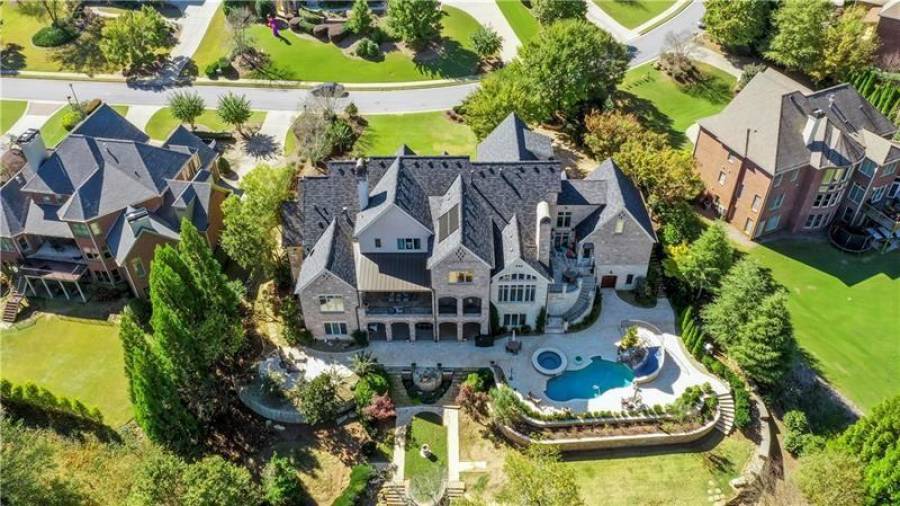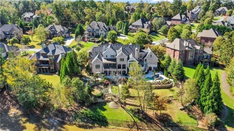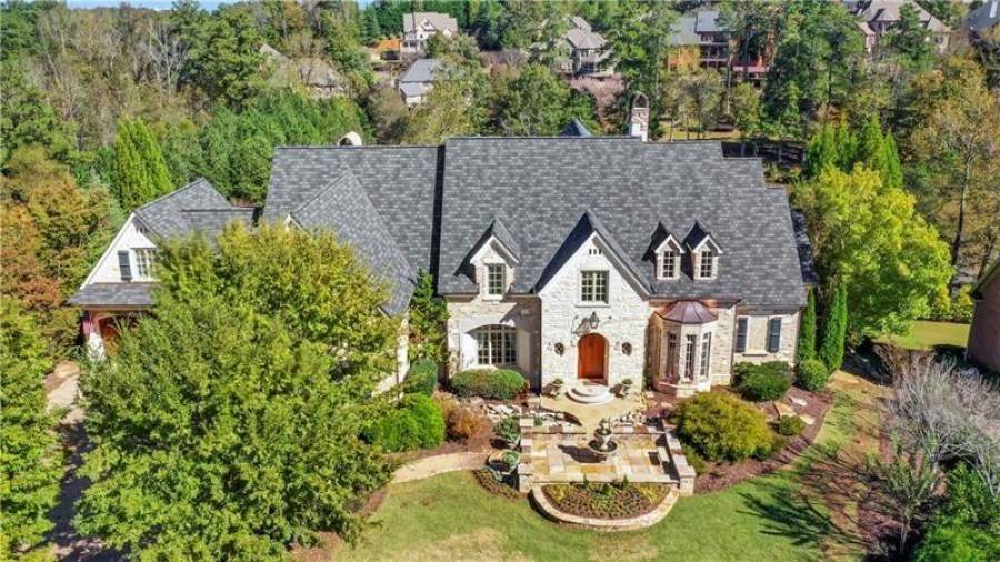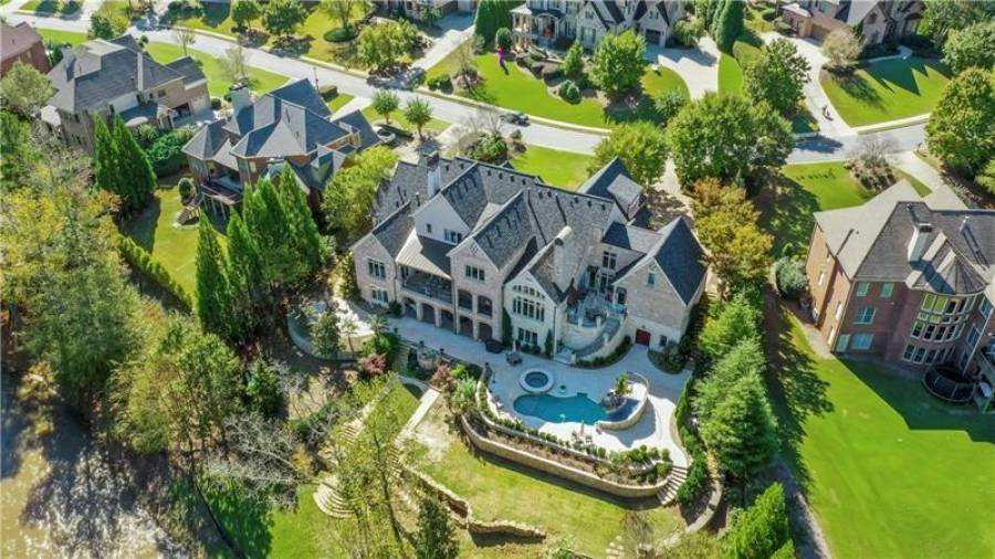 Gorgeous European inspired Masterpiece! Offering relaxing poolside and lave views! Built with the finest materials and custom design, the attention to detail is unforgettable! An entertainers dream home! Boasting 7 fireplaces and a 3-level elevator. Main level features include stunning fireside study, elegant dining room, natural light filled great room, gorgeous gourmet kitchen with huge walk-in pantry, sun filled keeping room with wet bar, peaceful screened porch and veranda. Impressive Master on the Main Bedroom with sitting room and luxury spa-like master bath.