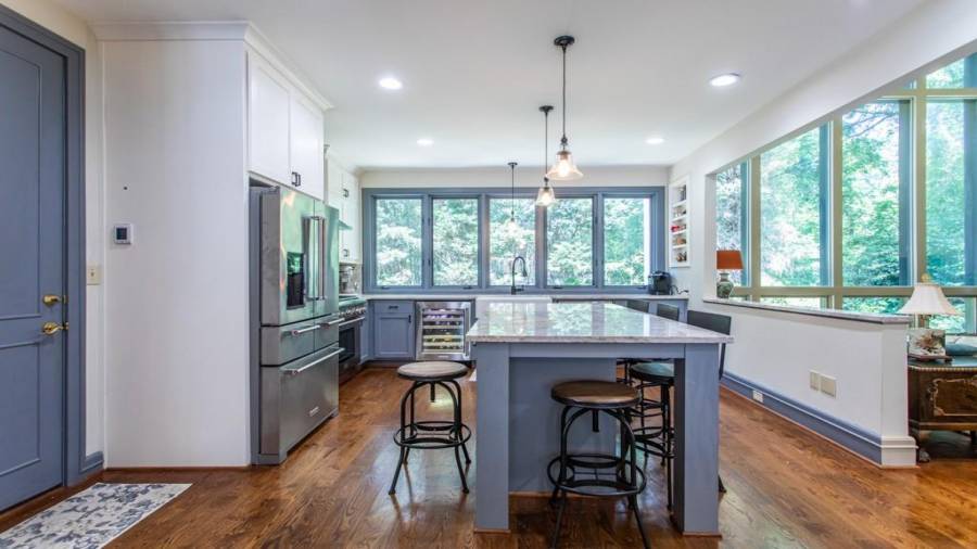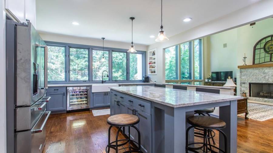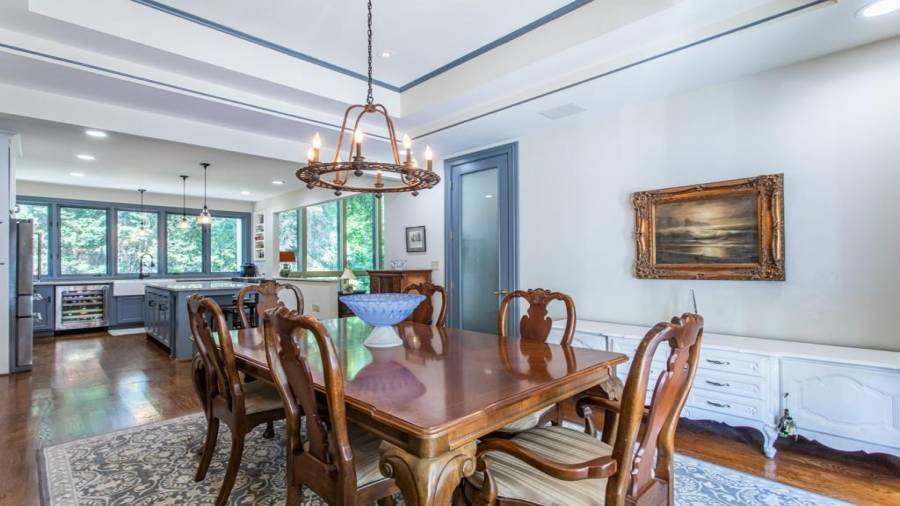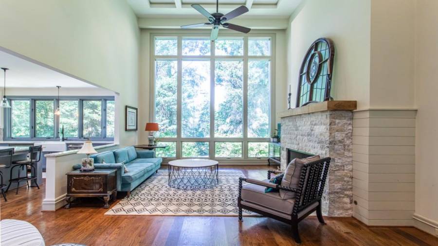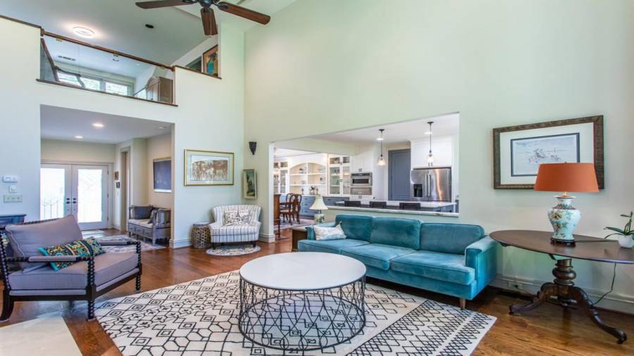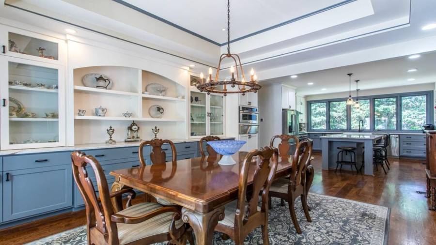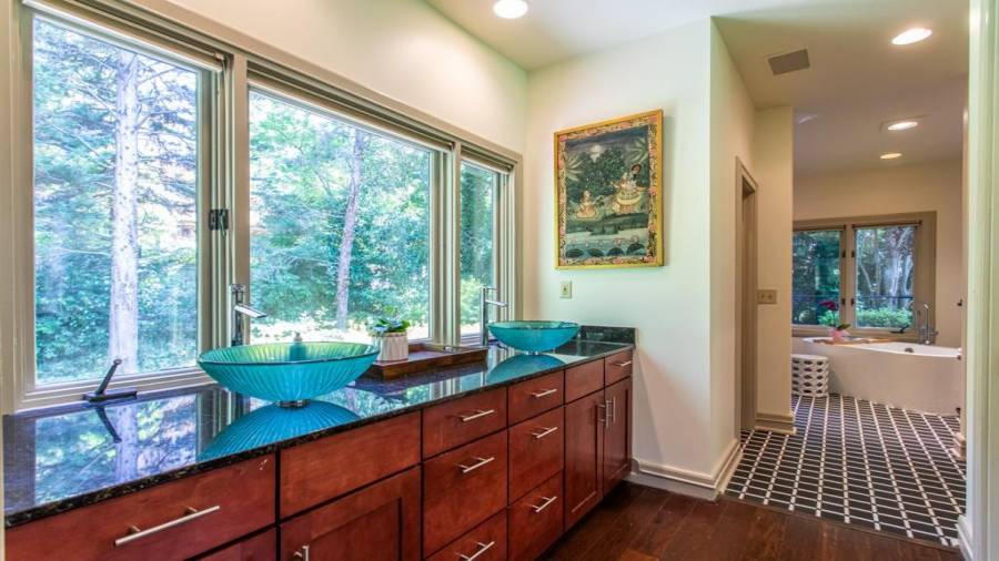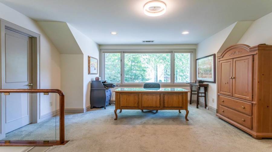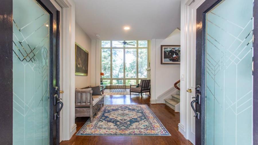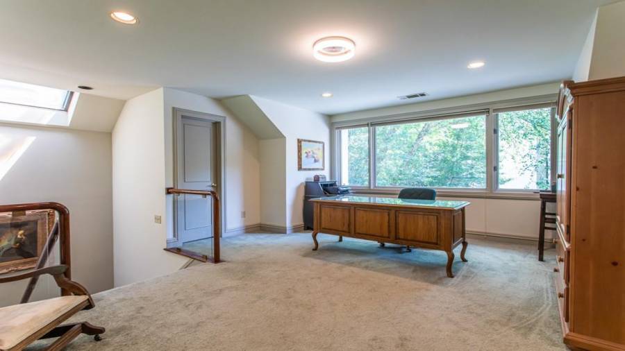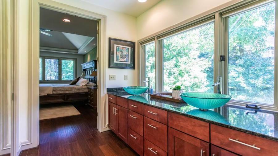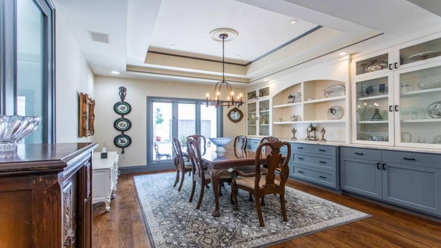 This distinctly custom contemporary home is the perfect entertainer’s paradise! Note the majestic entrance to the light-filled, 2-story wall of windows in the living room, excellent craftsmanship apparent in the beautiful open kitchen with large island, granite counters, high-end appliances, and facing large dining room with tray ceiling, lovely built-ins, and floor to ceiling windows. More amazing features include 2 large primary suites (including one on main containing a recently remodeled bathroom), 2 living area fireplaces, separate loft office & upstairs