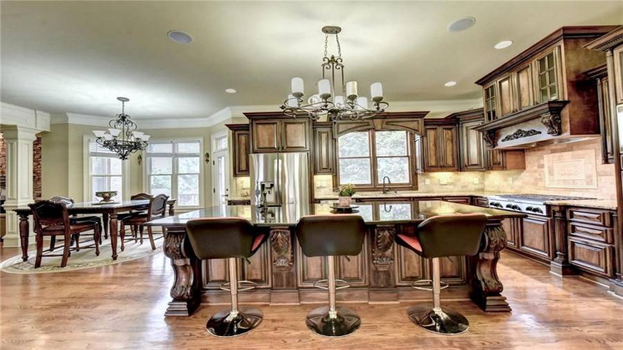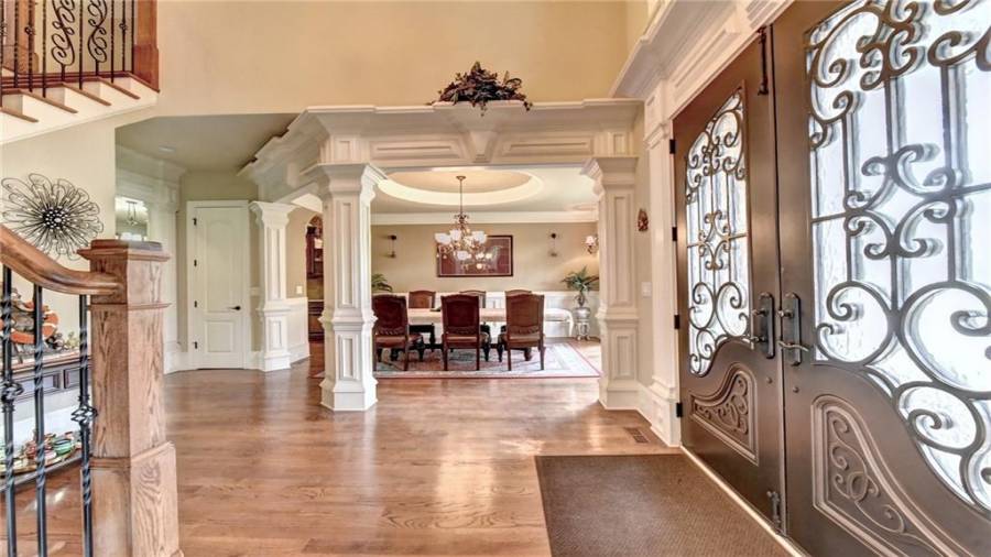 Gorgeous brick traditional in St Ives! Heavy iron castle door entry welcomes your guests. 6 bedroom/ 6 baths on 4 levels. Home features a gourmet kitchen with chef’s appliances, massive island, open to family room. Master suite up with sitting room and 3 additional bedrooms- all with private baths. Exceptionally impressive trim package on all 3 levels. Two levels of finished basement with exterior entry. Exercise room, massive media room with 150 inch big screen, game room, bar area and additional space make this an entertainers paradise! Must SEE!!