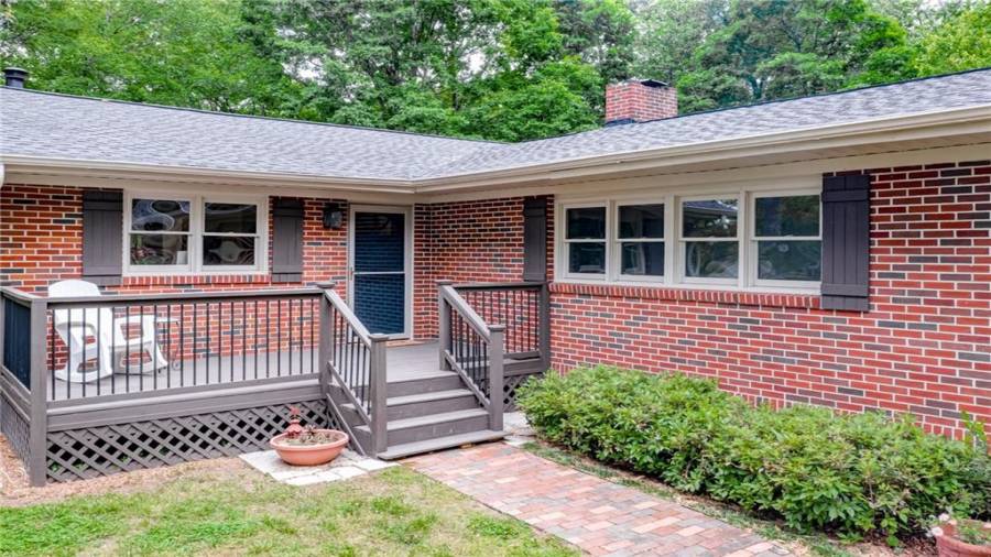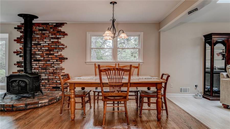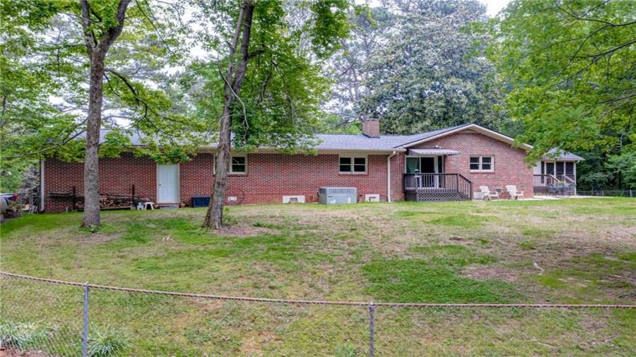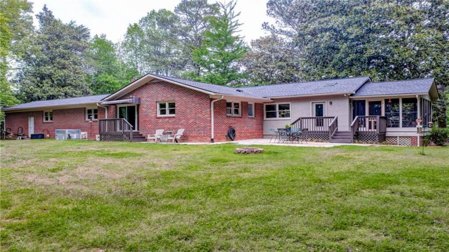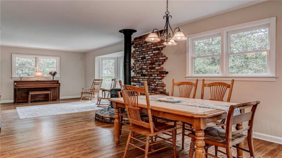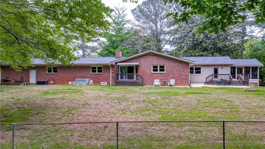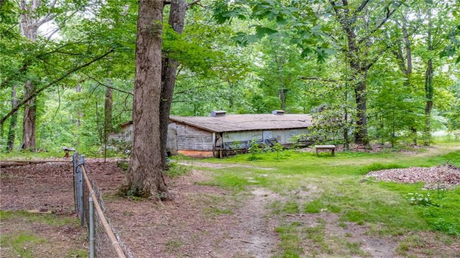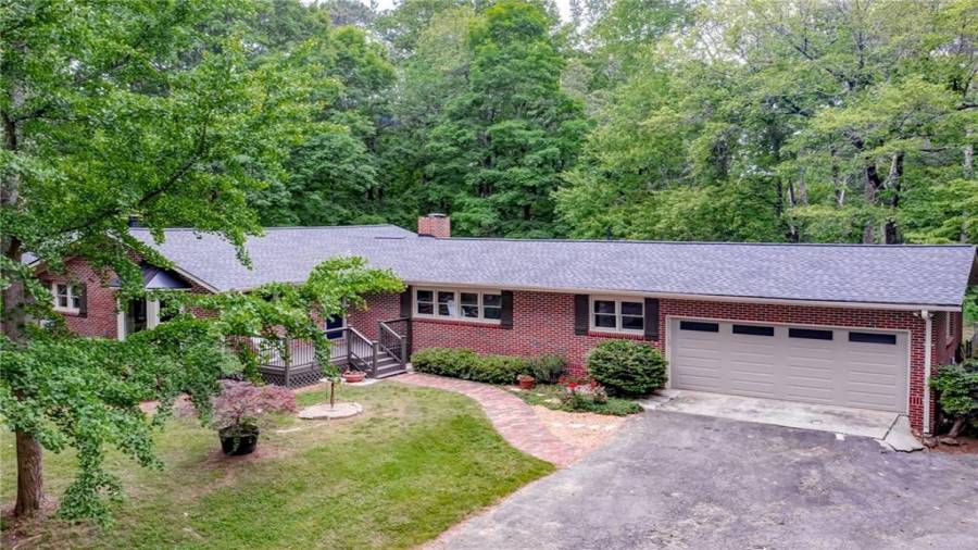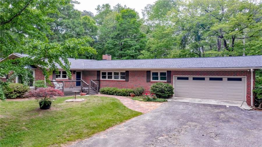 Enjoy country living at its best. Traditional brick ranch nestled on 18 acres of lush woods, creek on back of property and open spaces perfect for a pasture for horses and gardening. Barn. Park-like setting with swing and beautiful plants. The home is perfect for entertaining with an open plan for living and dining. The living room has a bay window and a wood burning stove with a wall design of bricks made from historic bricks from Atlanta . Great room has a vaulted ceiling. Gourmet kitchen has been remodeled and includes beautiful cabinetry, granite counters