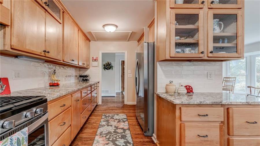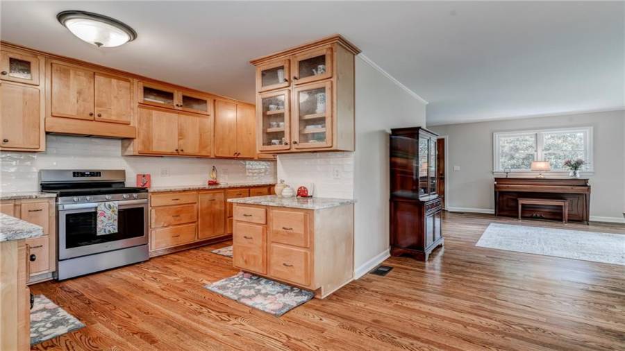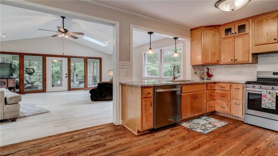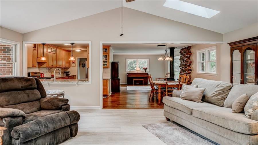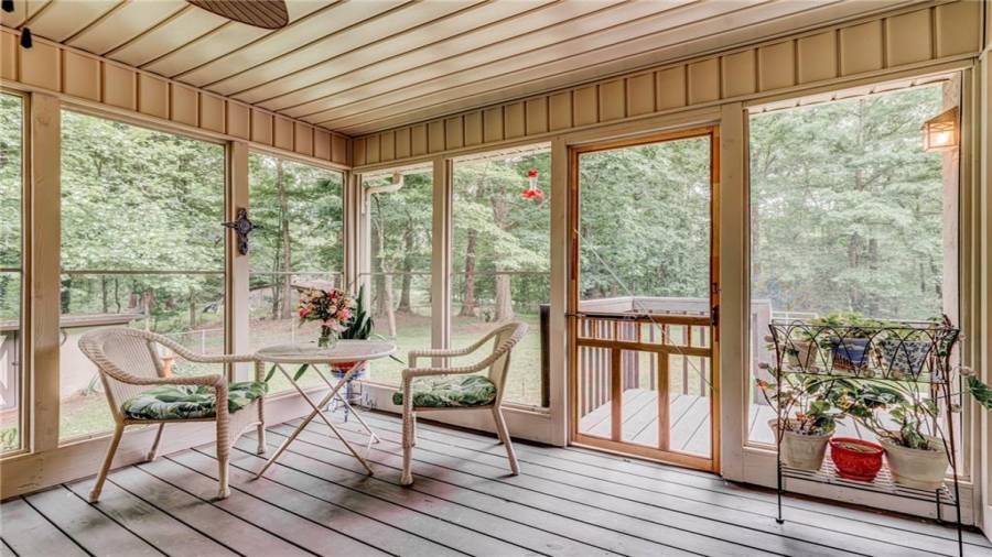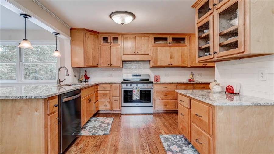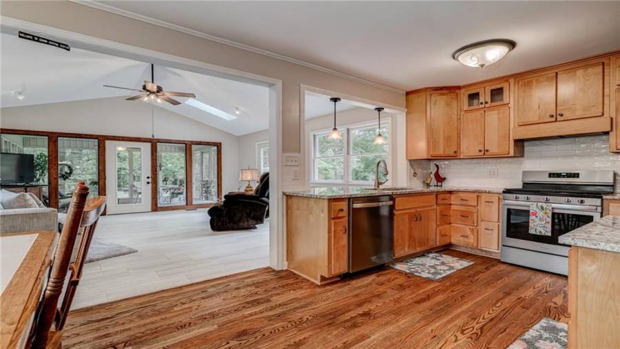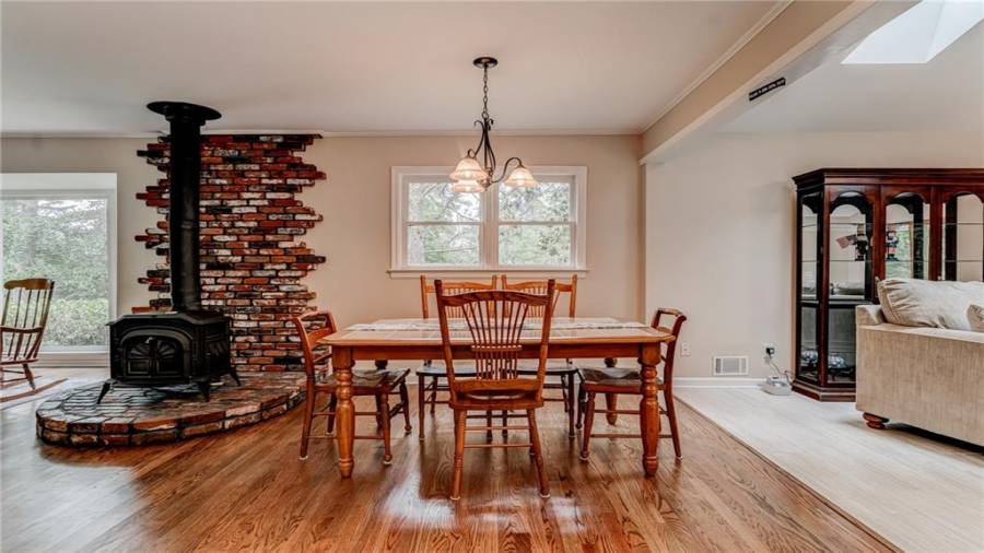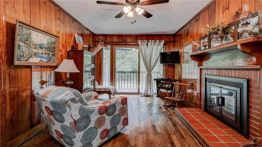 Enjoy country living at its best. Traditional brick ranch nestled on 18 acres of lush woods, creek on back of property and open spaces perfect for a pasture for horses and gardening. Barn. Park-like setting with swing and beautiful plants. The home is perfect for entertaining with an open plan for living and dining. The living room has a bay window and a wood burning stove with a wall design of bricks made from historic bricks from Atlanta . Great room has a vaulted ceiling. Gourmet kitchen has been remodeled and includes beautiful cabinetry, granite counters
