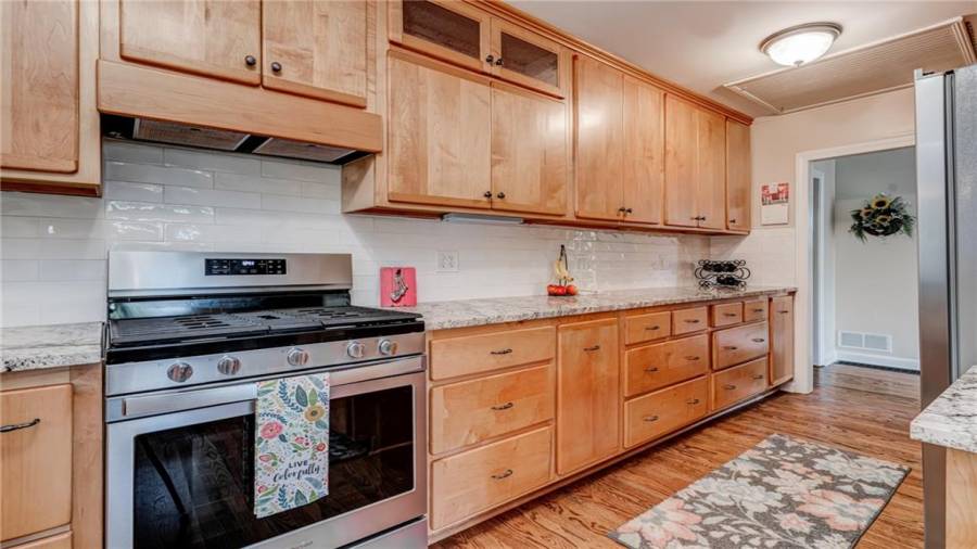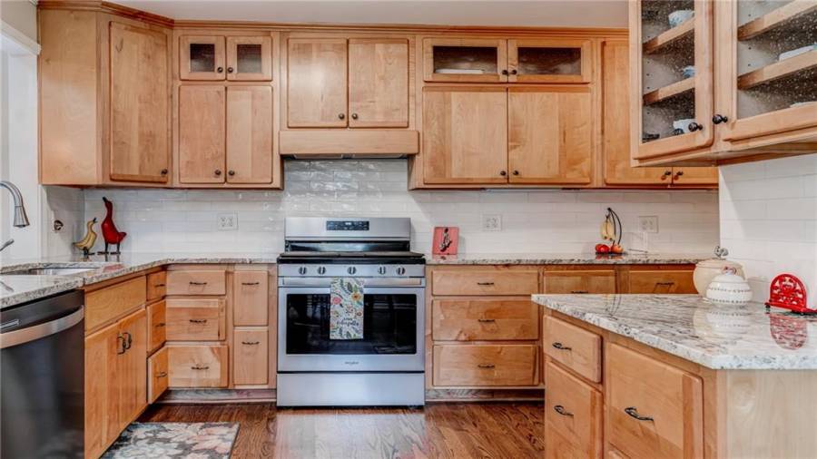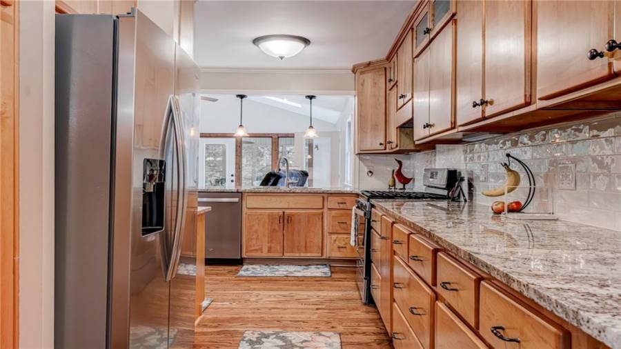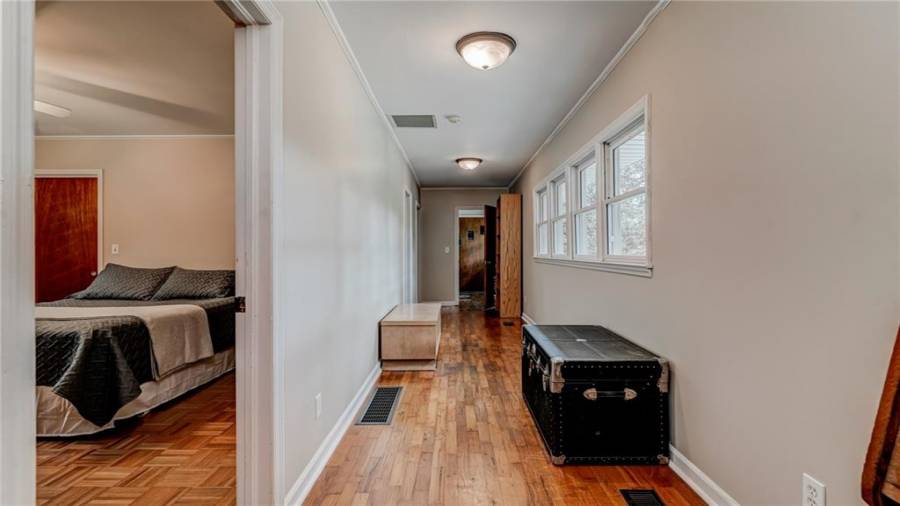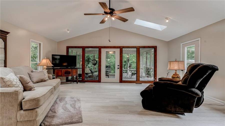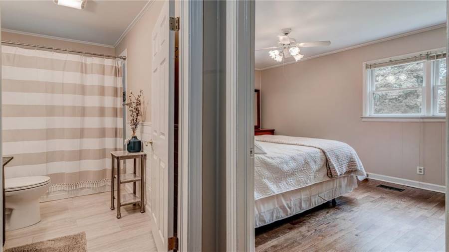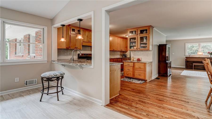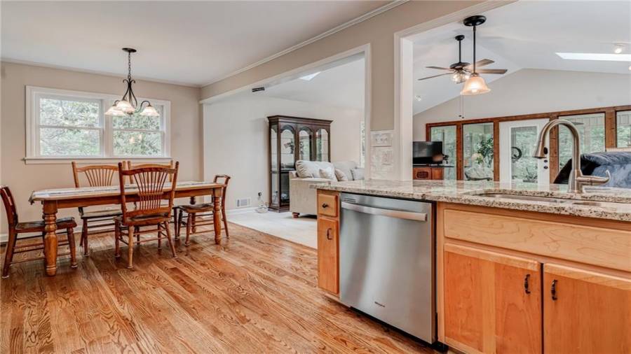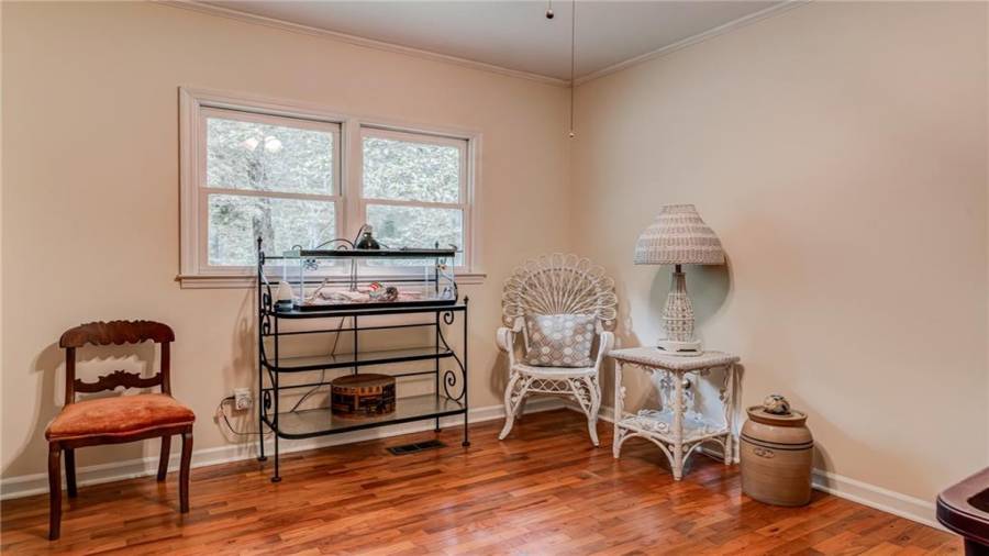 Enjoy country living at its best. Traditional brick ranch nestled on 18 acres of lush woods, creek on back of property and open spaces perfect for a pasture for horses and gardening. Barn. Park-like setting with swing and beautiful plants. The home is perfect for entertaining with an open plan for living and dining. The living room has a bay window and a wood burning stove with a wall design of bricks made from historic bricks from Atlanta . Great room has a vaulted ceiling. Gourmet kitchen has been remodeled and includes beautiful cabinetry, granite counters