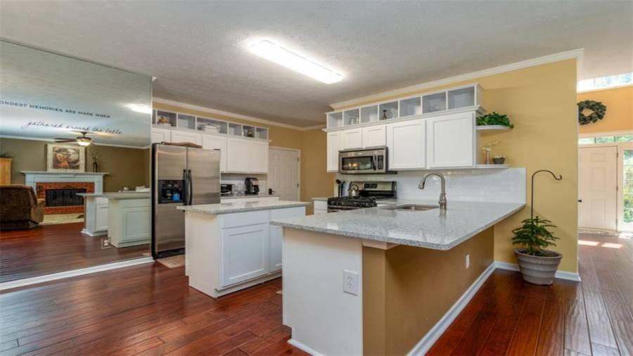 : Breakfast Bar, Eat-in Kitchen, Breakfast Room, Cabinets White, Pantry, Second Kitchen, View To Family Room, Stone Counters