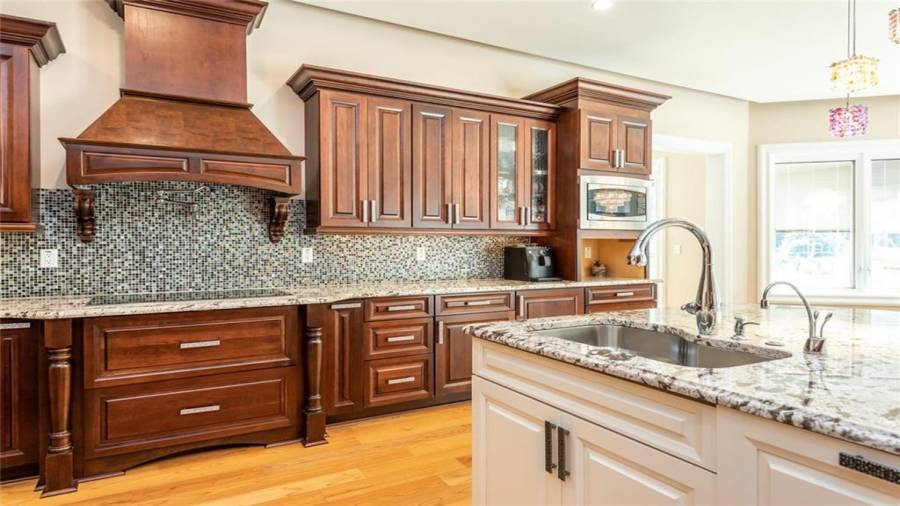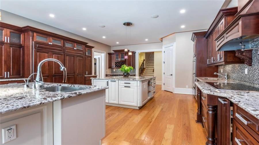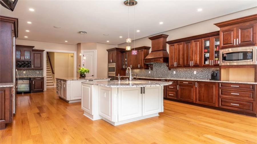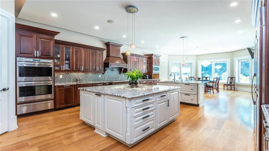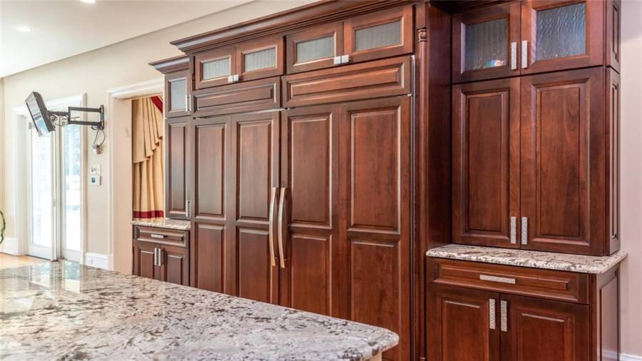 : Breakfast Bar, Cabinets Stain, Breakfast Room, Pantry Walk-in, Kitchen Island, Second Kitchen, Stone Counters