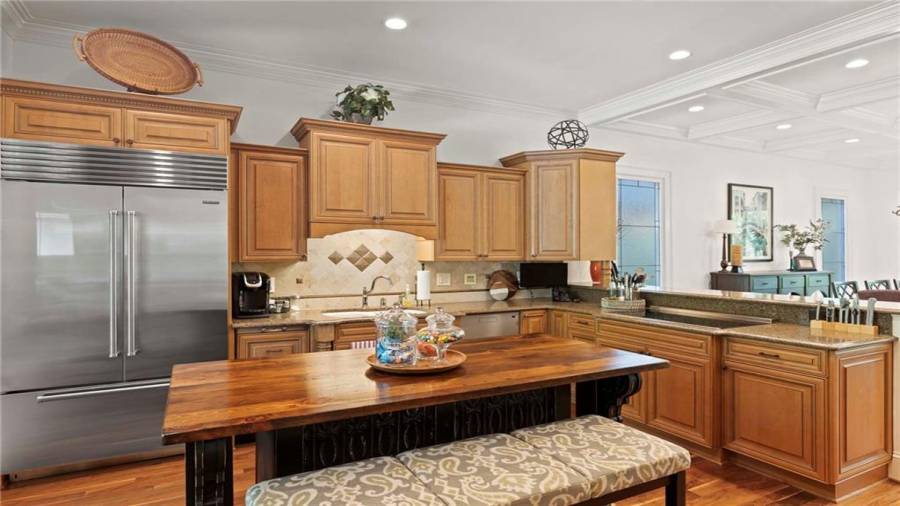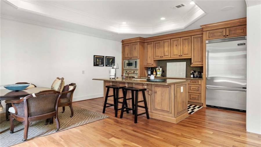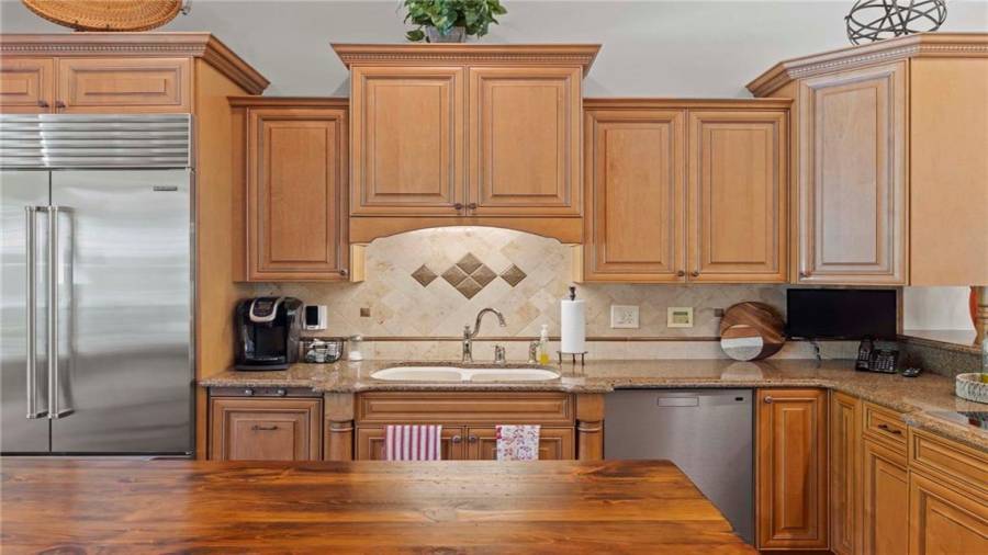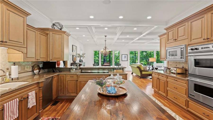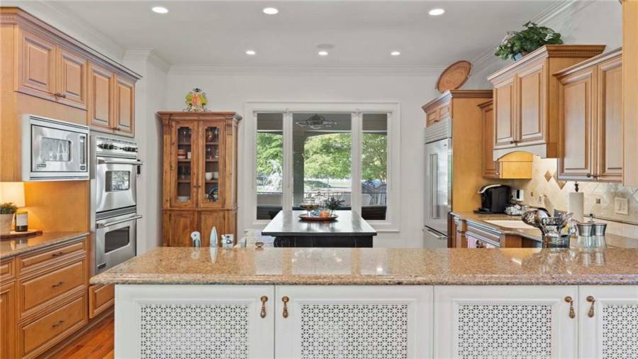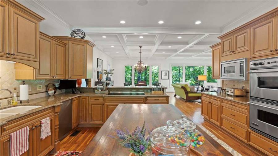 : Cabinets Stain, Eat-in Kitchen, Pantry Walk-in, Second Kitchen, Solid Surface Counters, Other Surface Counters
