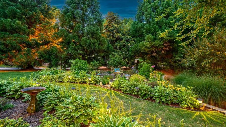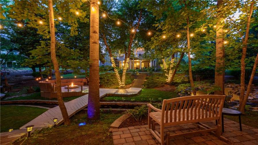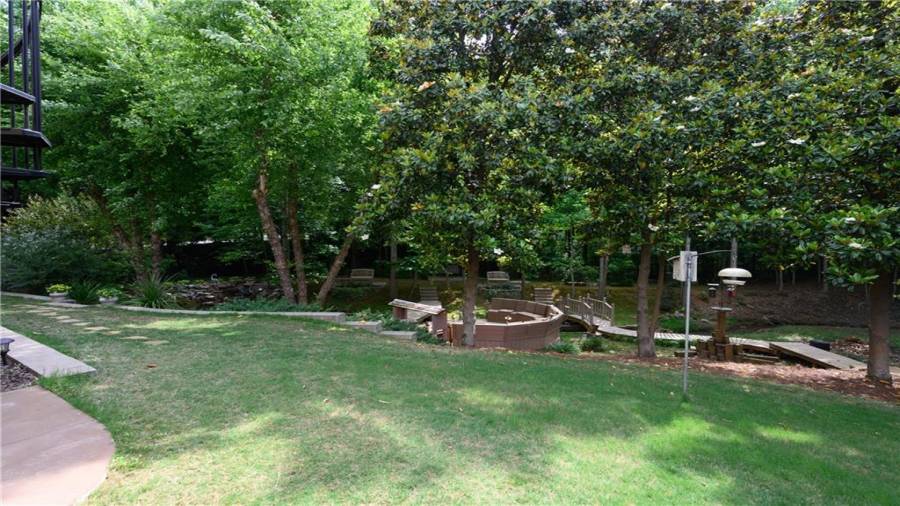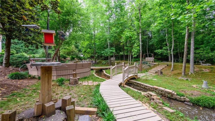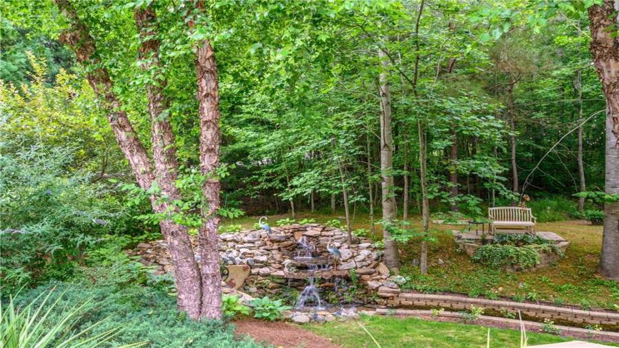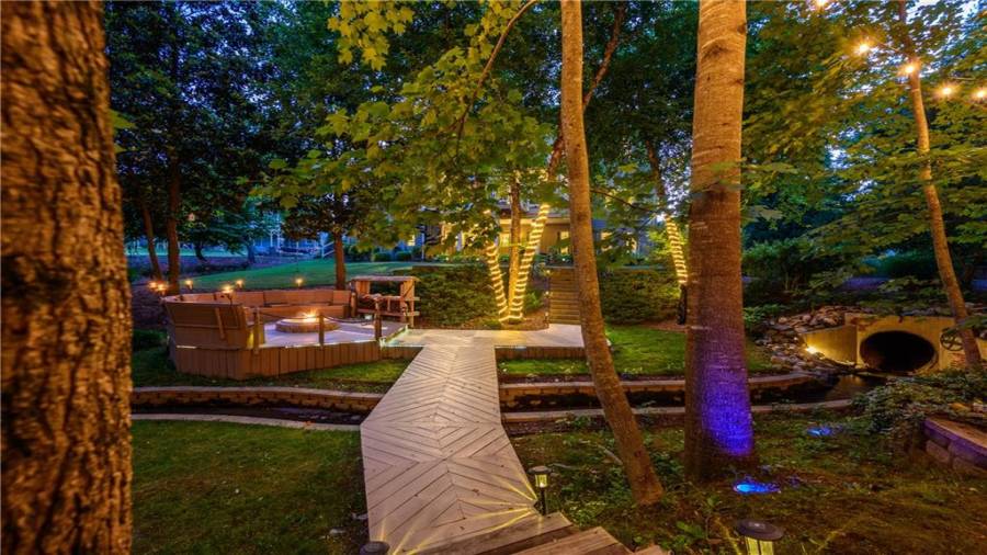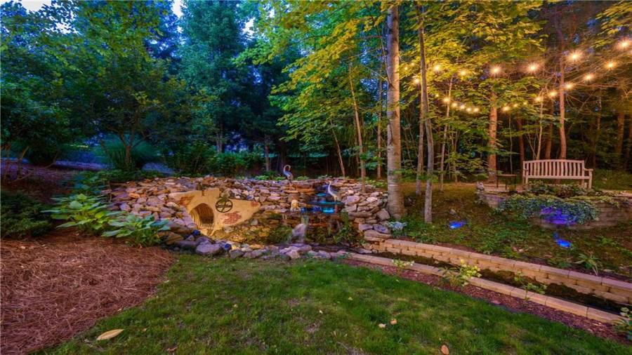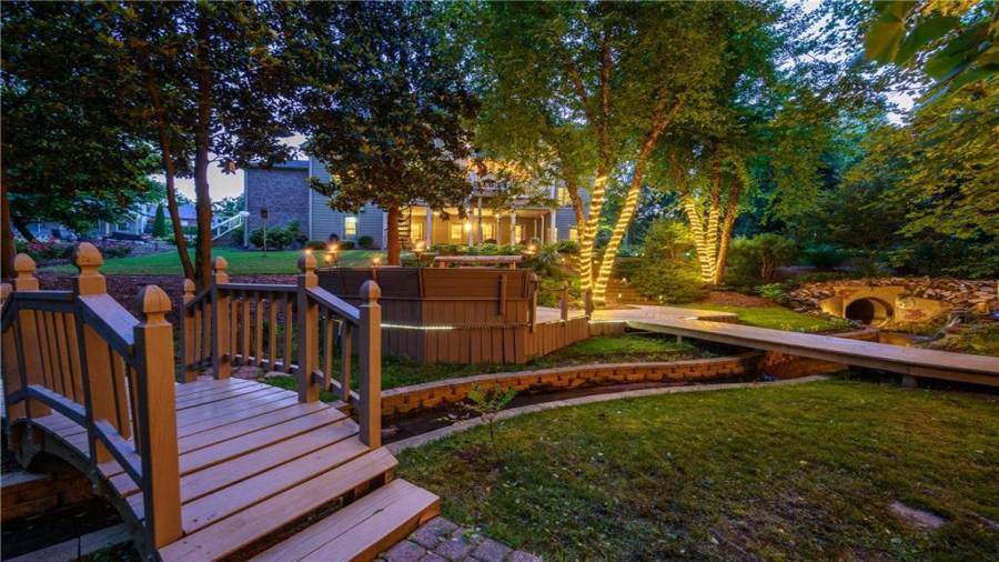 Stunning 3 sided brick beauty situated on a huge corner lot with serene backyard setting- complete with waterfall, creek, garden and custom firepit deck! You’ll love this peaceful one-of-a-kind space! Open concept floorplan boasts elegant upgrades throughout. Main level floorplan includes a formal sitting room, formal dining room, main level office with potential as an extra bedroom and is adjacent to full bathroom. Stunning kitchen with gorgeous cabinets, granite and SS appliances and an abundance of counter space and offers views to the spacious family room.