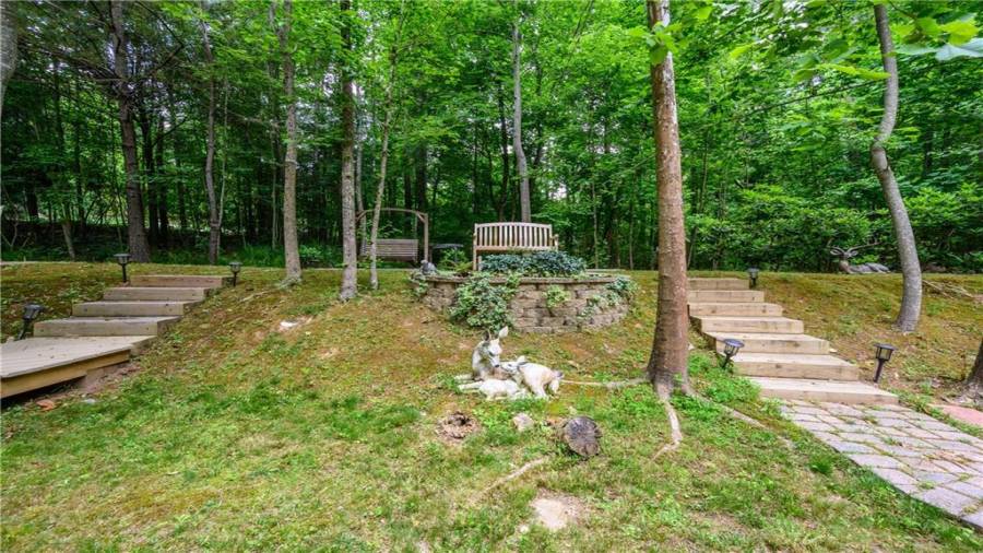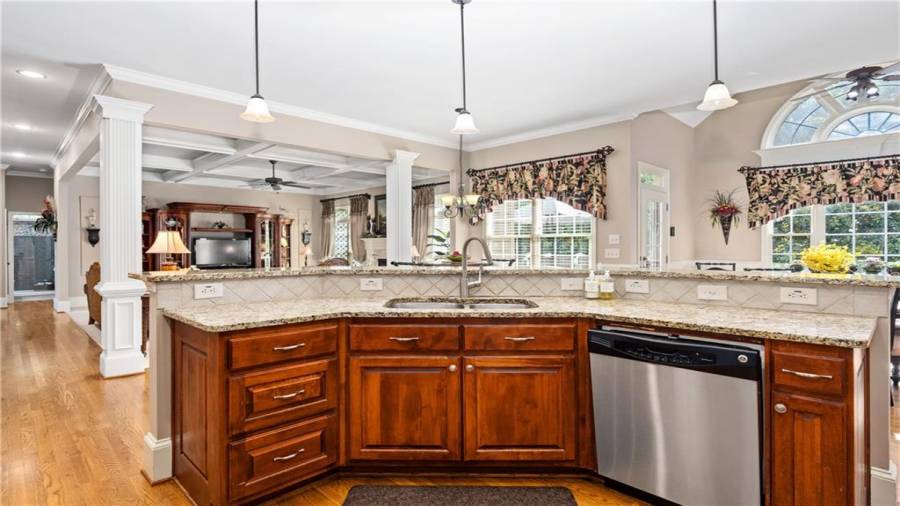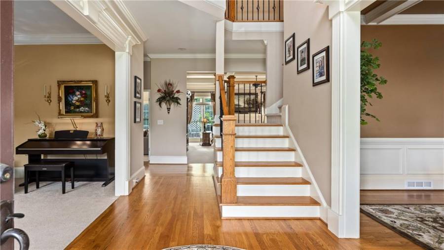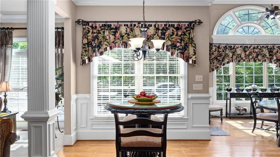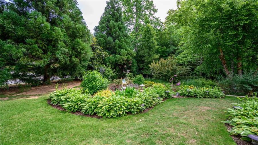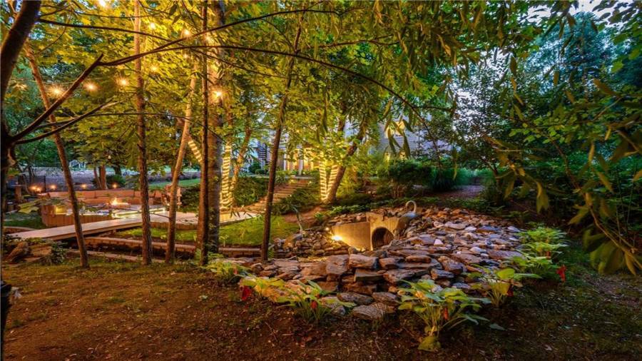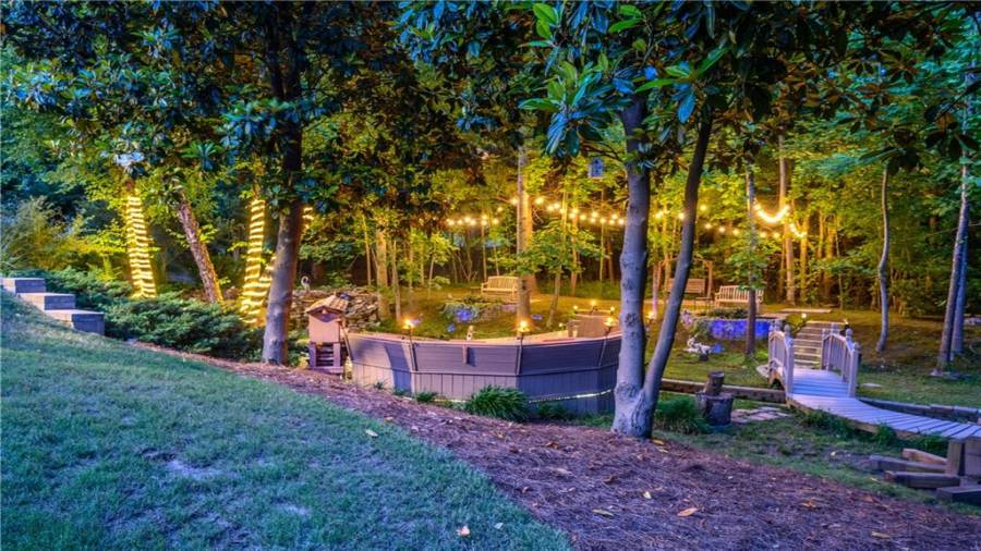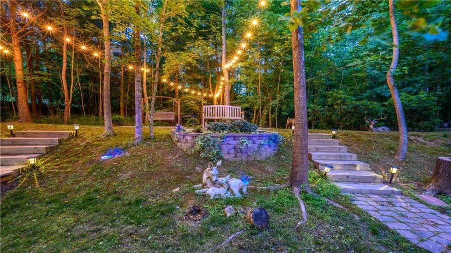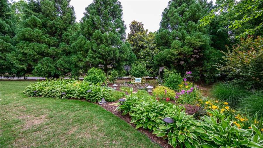 Stunning 3 sided brick beauty situated on a huge corner lot with serene backyard setting- complete with waterfall, creek, garden and custom firepit deck! You’ll love this peaceful one-of-a-kind space! Open concept floorplan boasts elegant upgrades throughout. Main level floorplan includes a formal sitting room, formal dining room, main level office with potential as an extra bedroom and is adjacent to full bathroom. Stunning kitchen with gorgeous cabinets, granite and SS appliances and an abundance of counter space and offers views to the spacious family room.